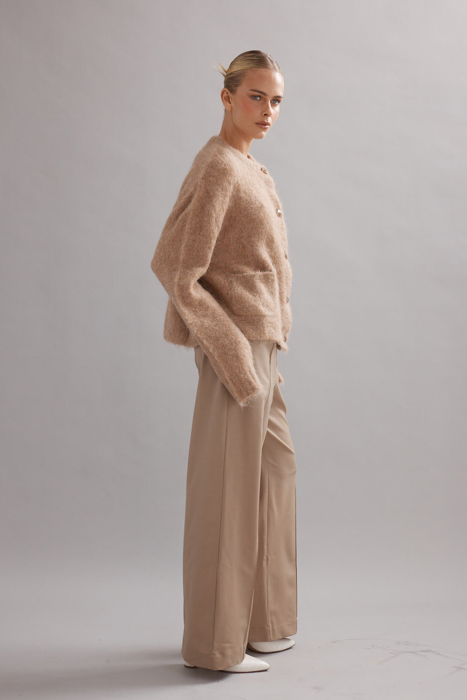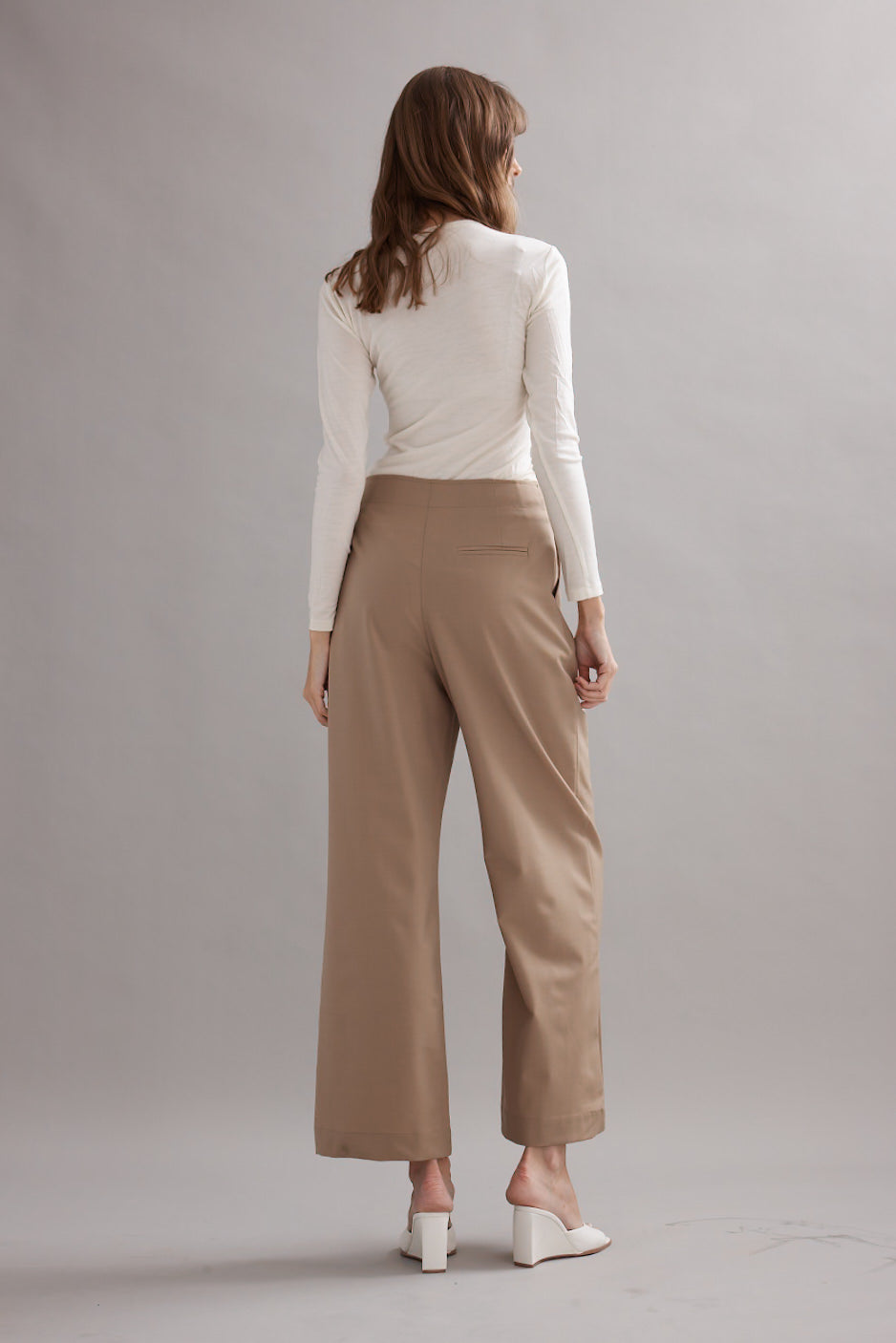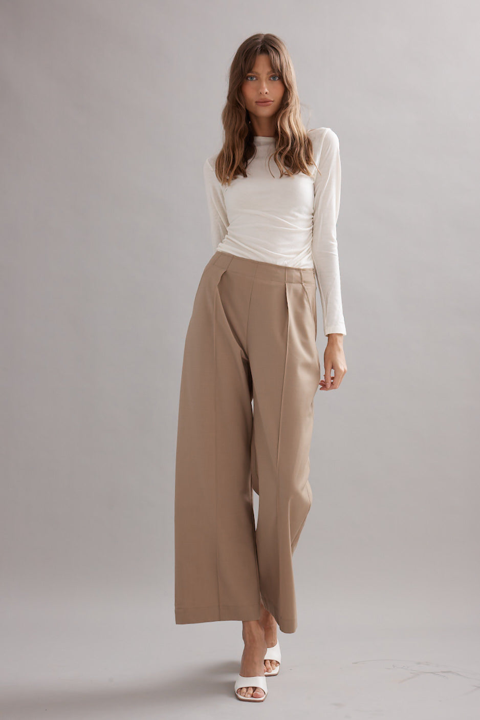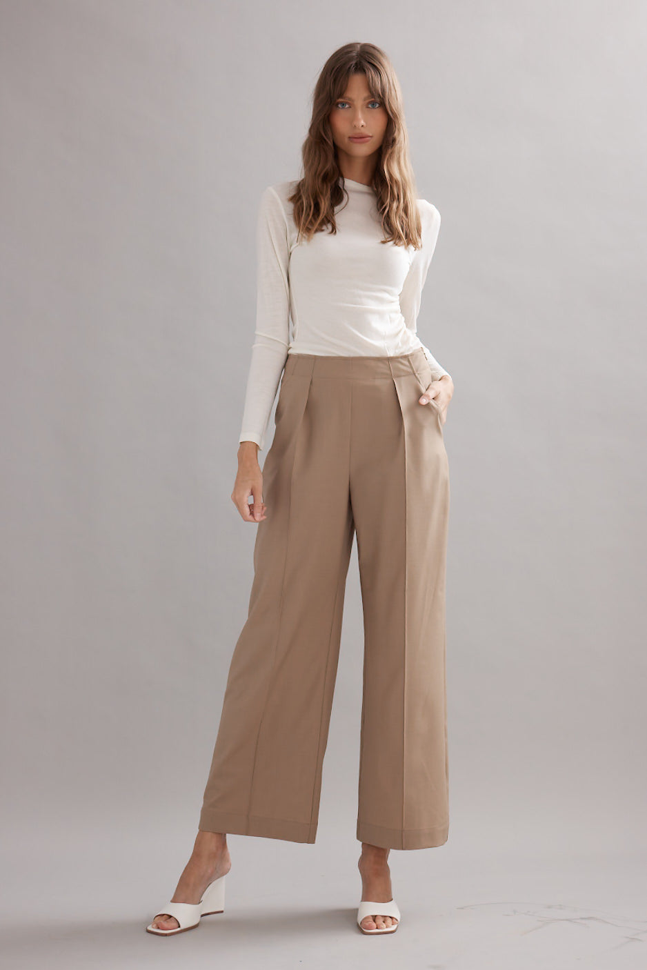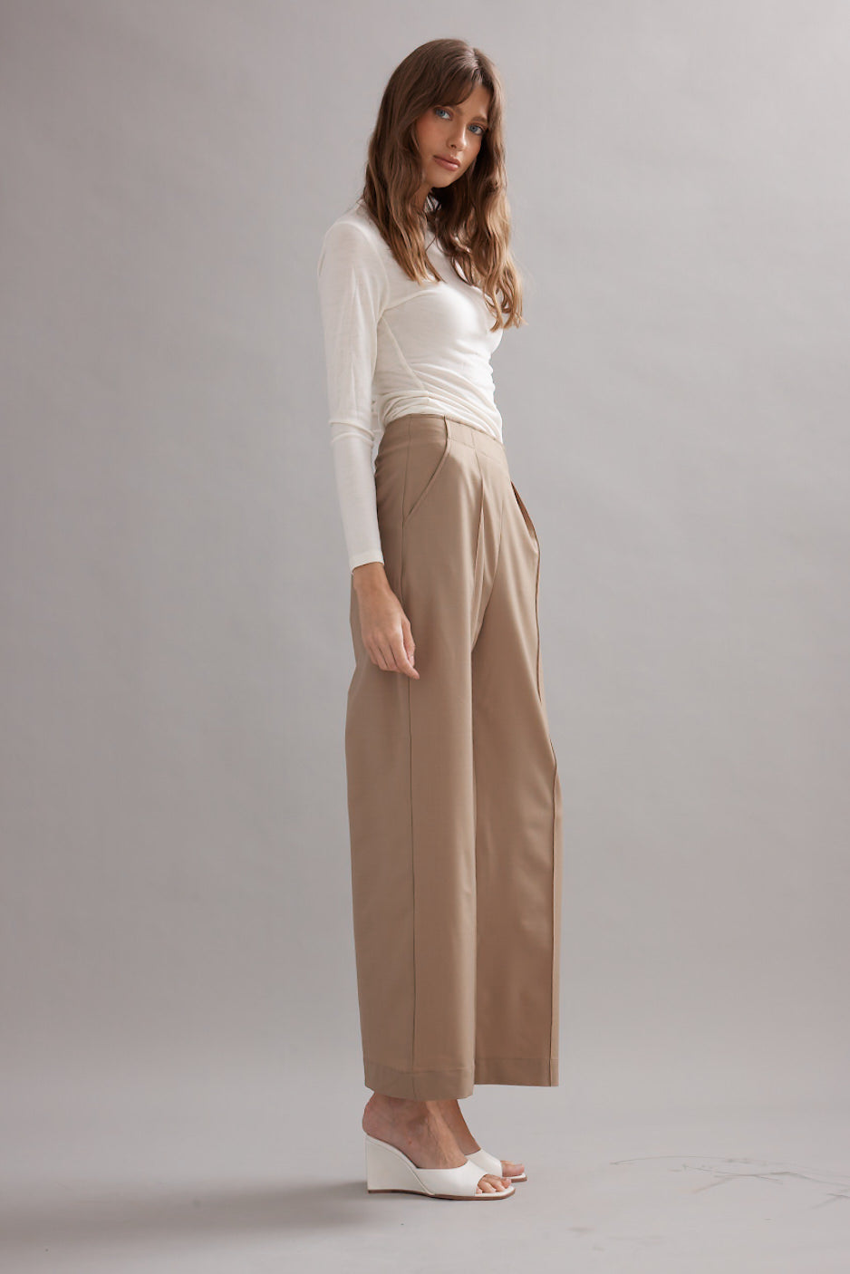 Introducing the Beckham Pant — a beautifully crafted wide-leg wool trouser designed to keep you warm this winter. Cut in a rich tan hue, this elevated essential features a pin tuck detailing down the leg, a side seam zip and angled side pockets. Whether dressed up or worn casually, the Beckham Pant brings effortless sophistication to your cold-weather wardrobe.