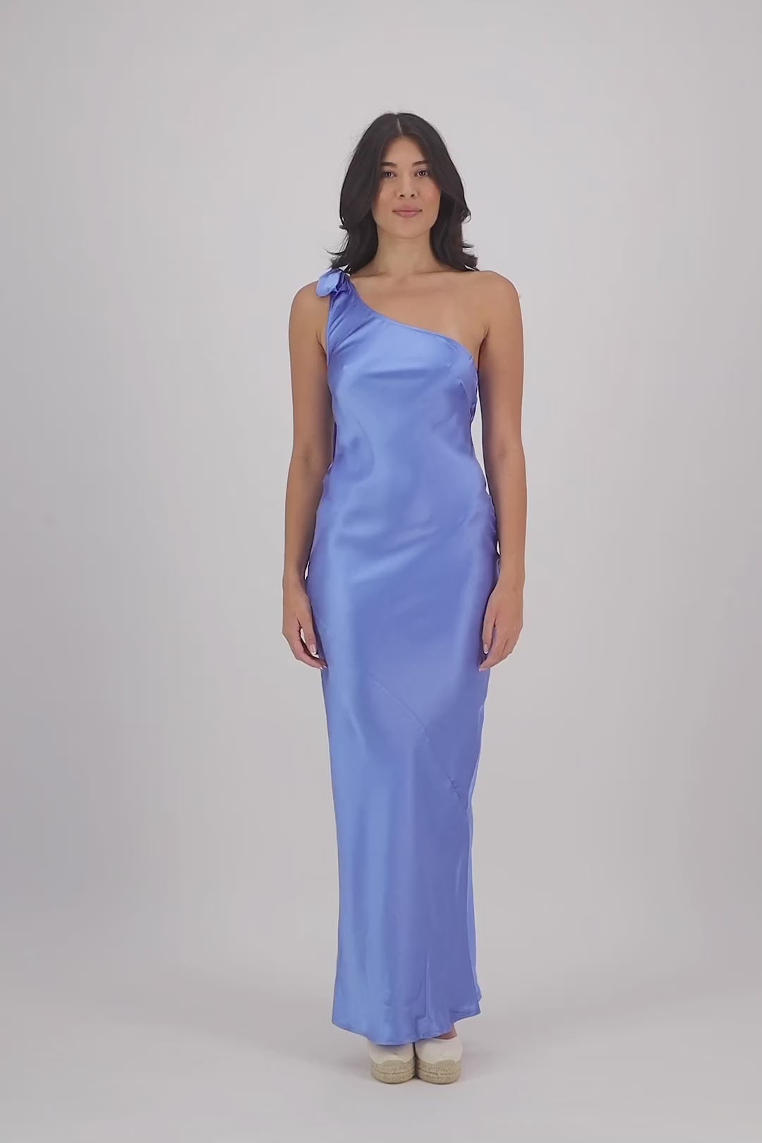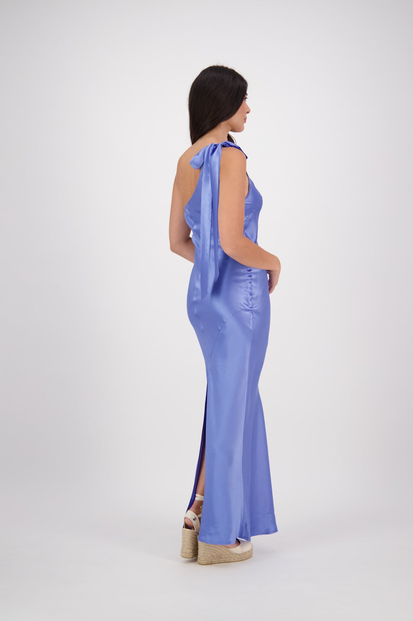 The One Shoulder Wilmer is sleek and elegant dress for any special occasion. Featuring and adjustable shoulder tie and slightly raised back back to allow for a strapless bra. Crafted from 100% luxurious silk.