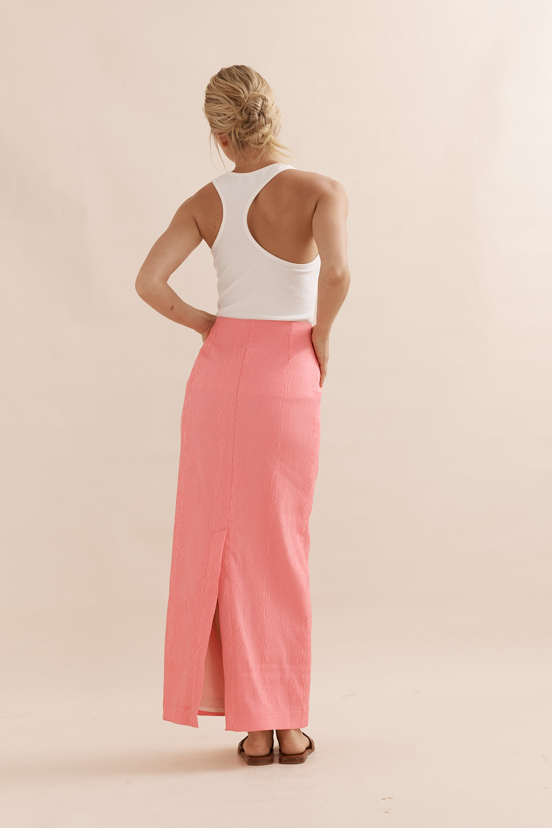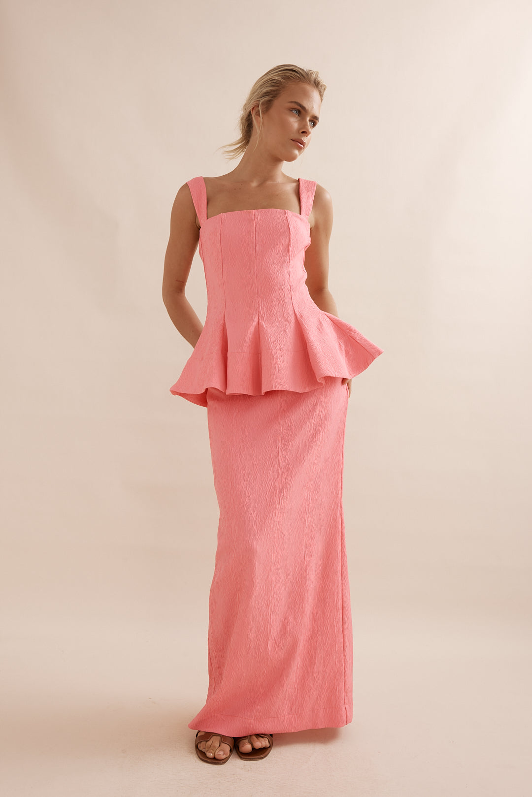 The Dion Skirt in bubblegum pink is a stunning addition to any wardrobe, offering a flattering, classic silhouette in a playful, vibrant hue. Designed to pair effortlessly with the matching Fit and Flare Bodice for a coordinated, bold look, or styled simply with a white tee for a more casual approach. Whether dressed up or down, this skirt brings a fun and feminine touch to your style.
