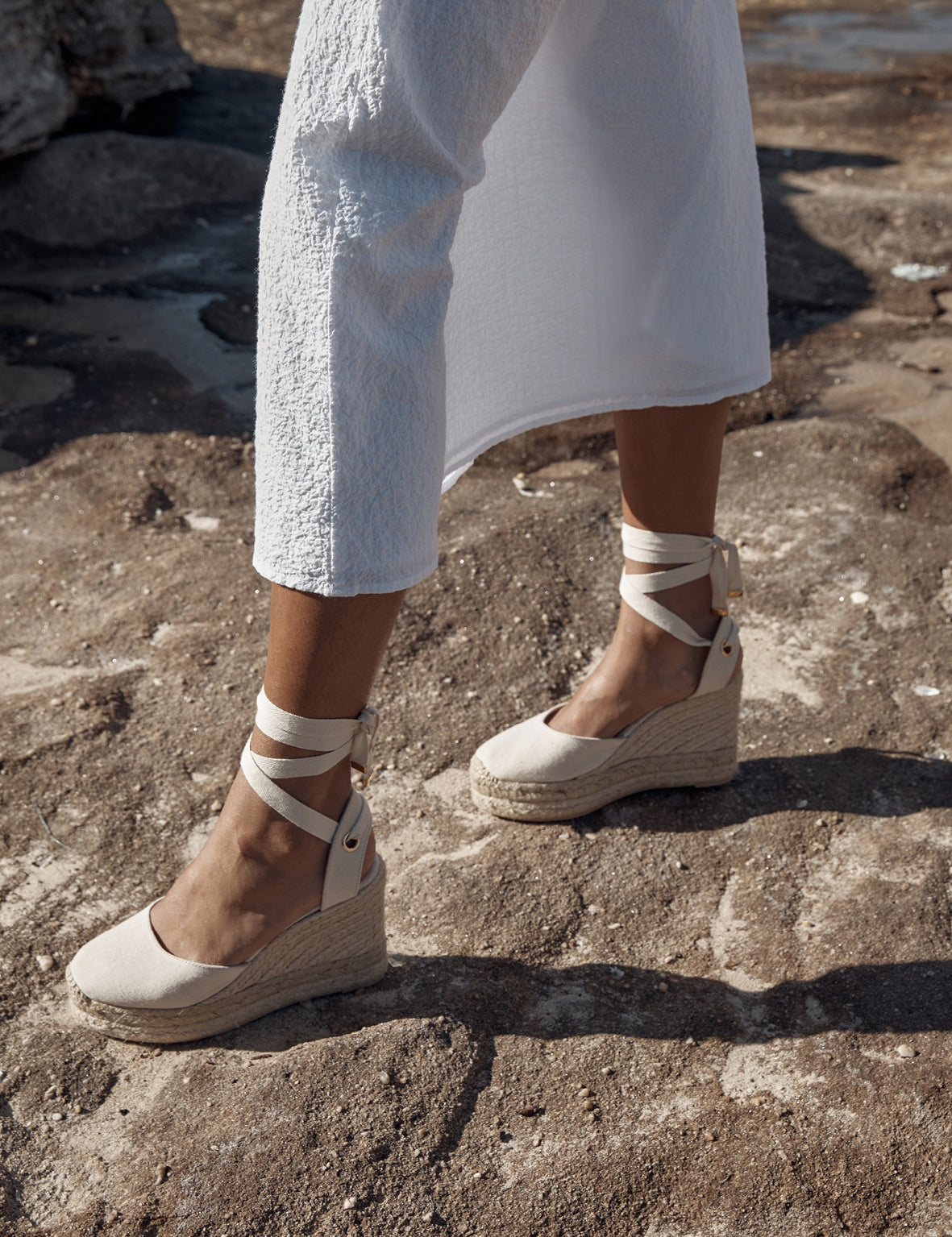 The Caitlin Crisp x La Tribe High Wedge Espadrille collab is what summer dreams are made of. Set on a woven wedge heel, soft round toe, rendered in a sophisticated canvas and secure with soft ties that wrap-around your ankle. Each pair comes with a plain and lace set of ties to suit any occasion.