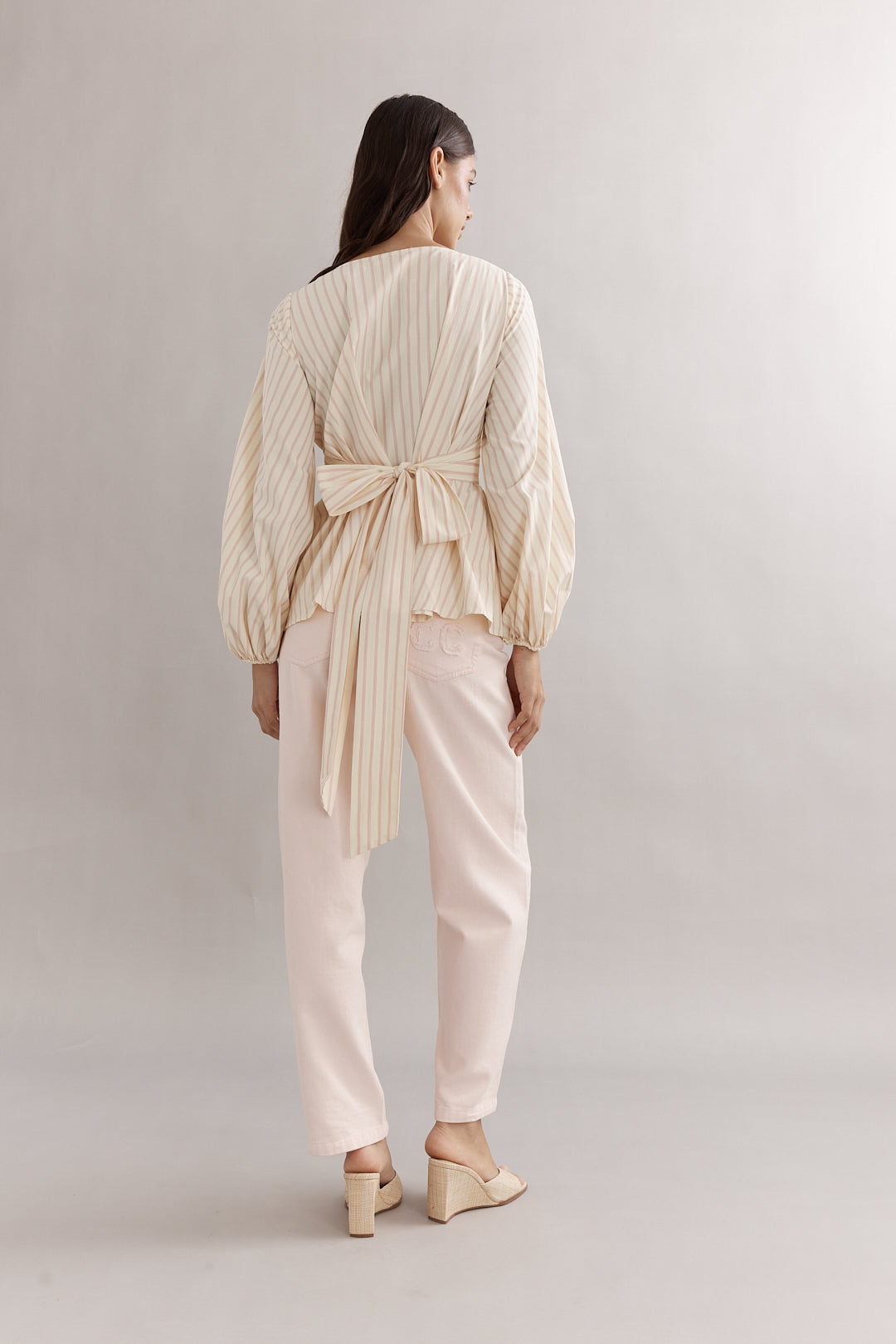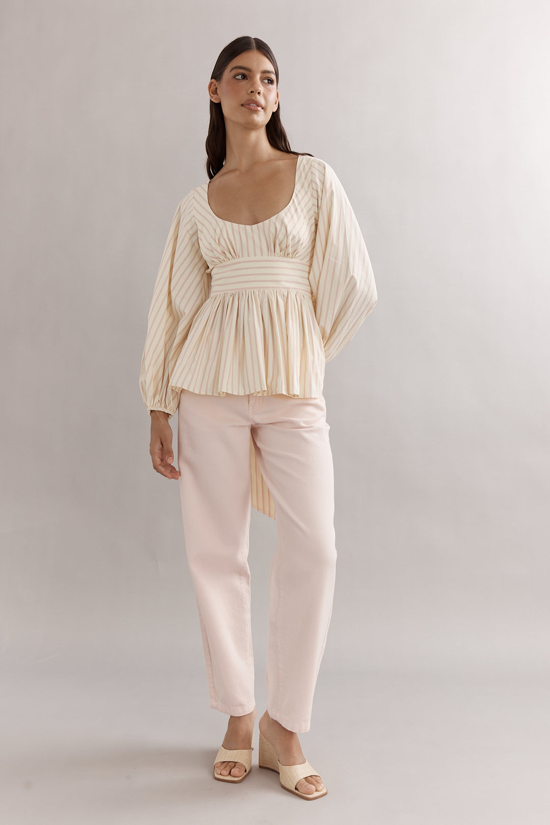 A gorgeous scooped neckline paired with a waist tie to synch, and a peplum hem. Whether paired with crisp white trousers or styled with relaxed jeans, the Jasmine Bodice guarantees versatility and sophistication.