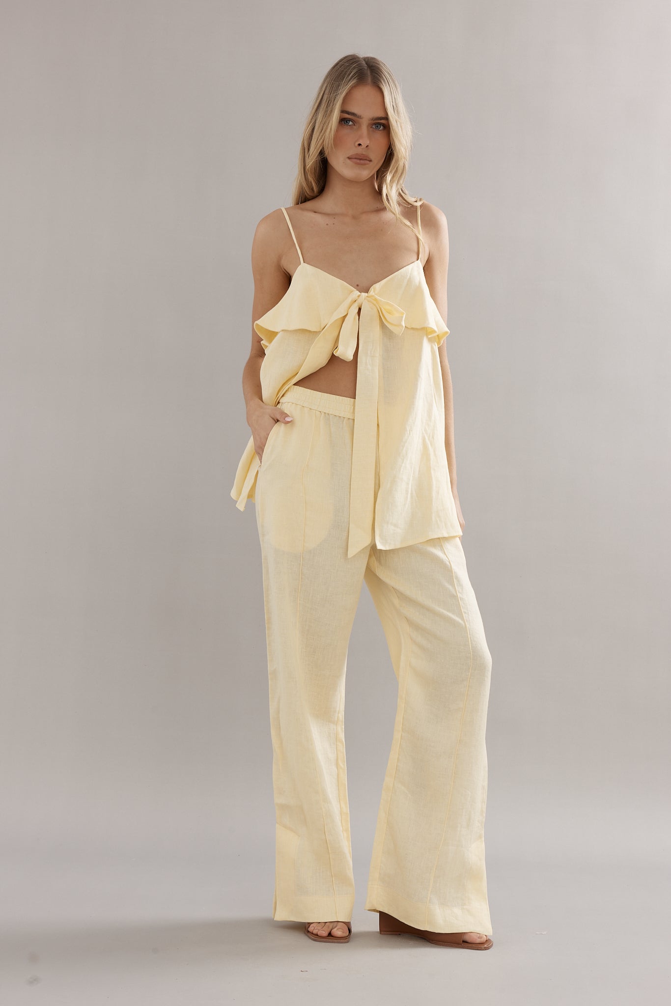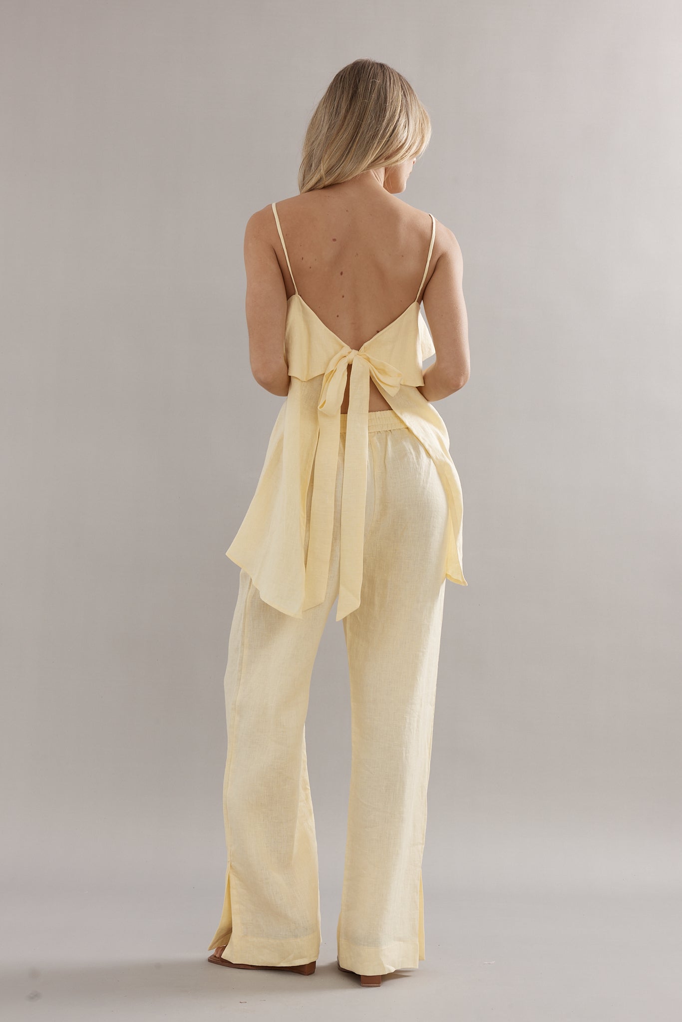 The pant you'll find yourself wearing on repeat. Featuring an elasticated waist, split detailing and side pockets. Pair with one of its matching Yellow Linen companions for a summer staple look.