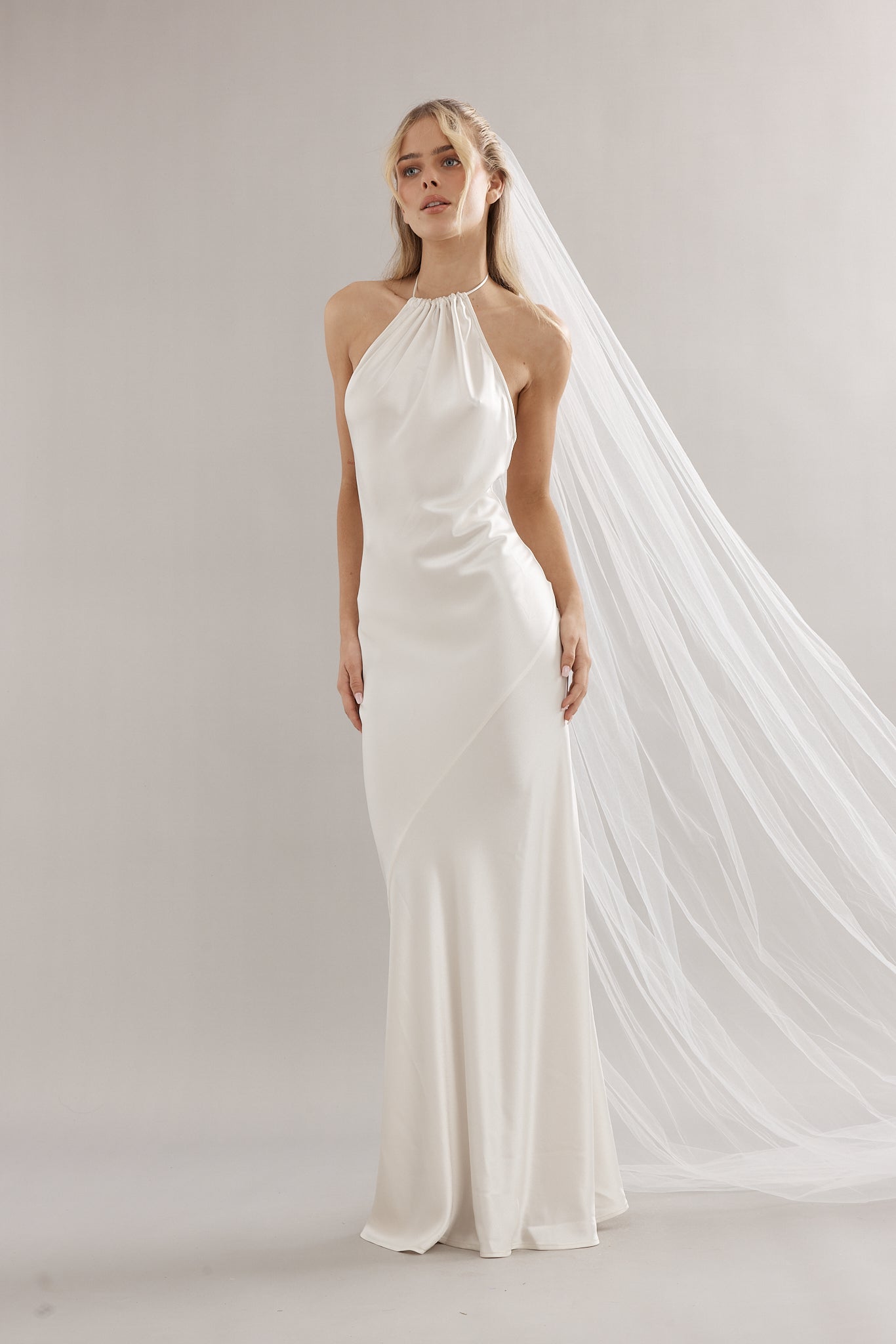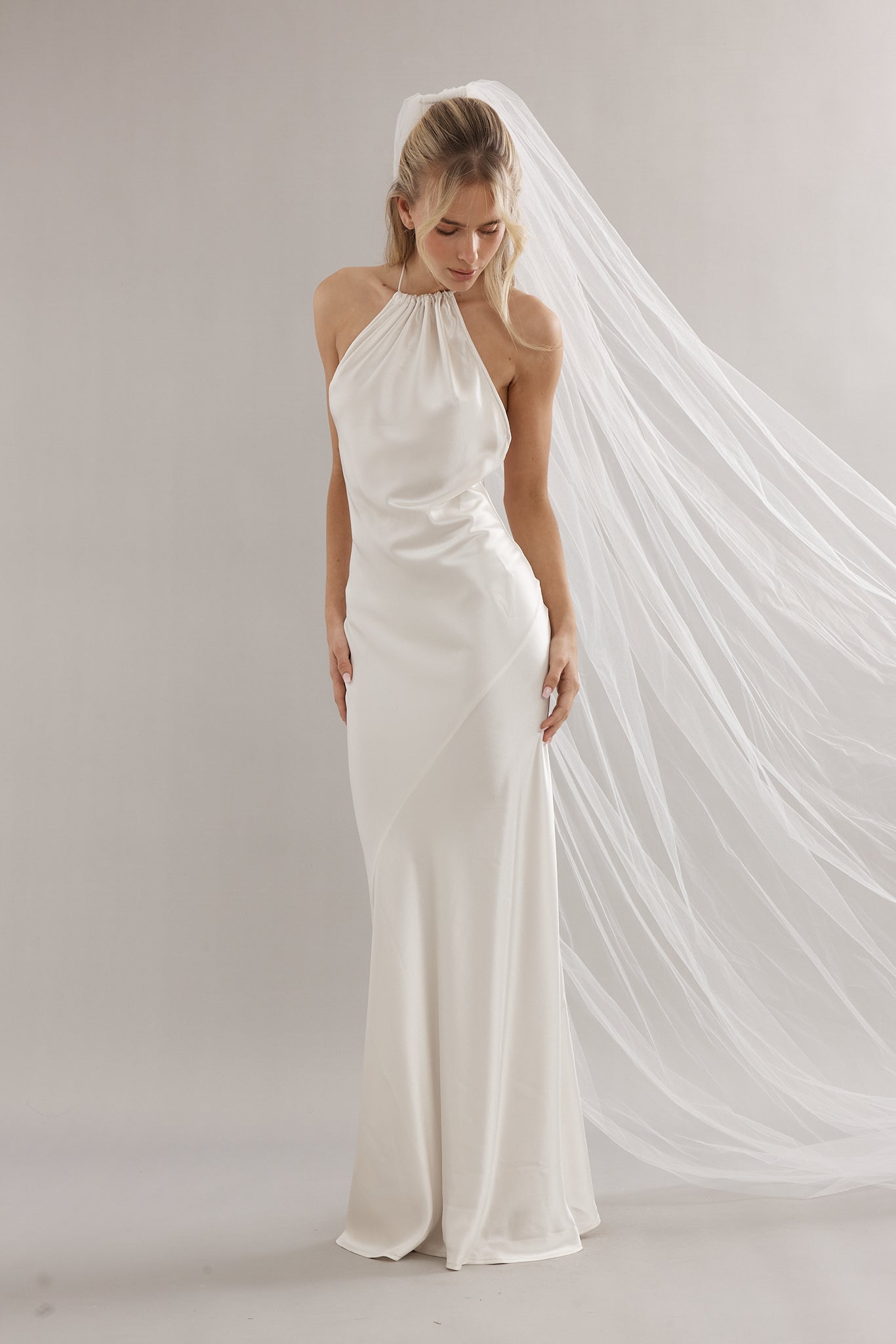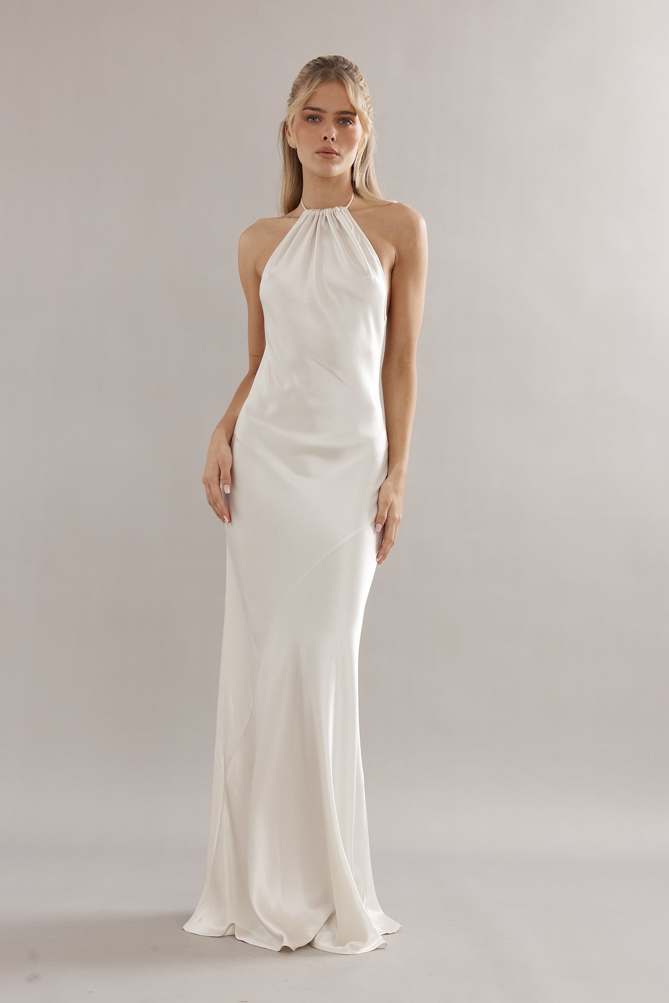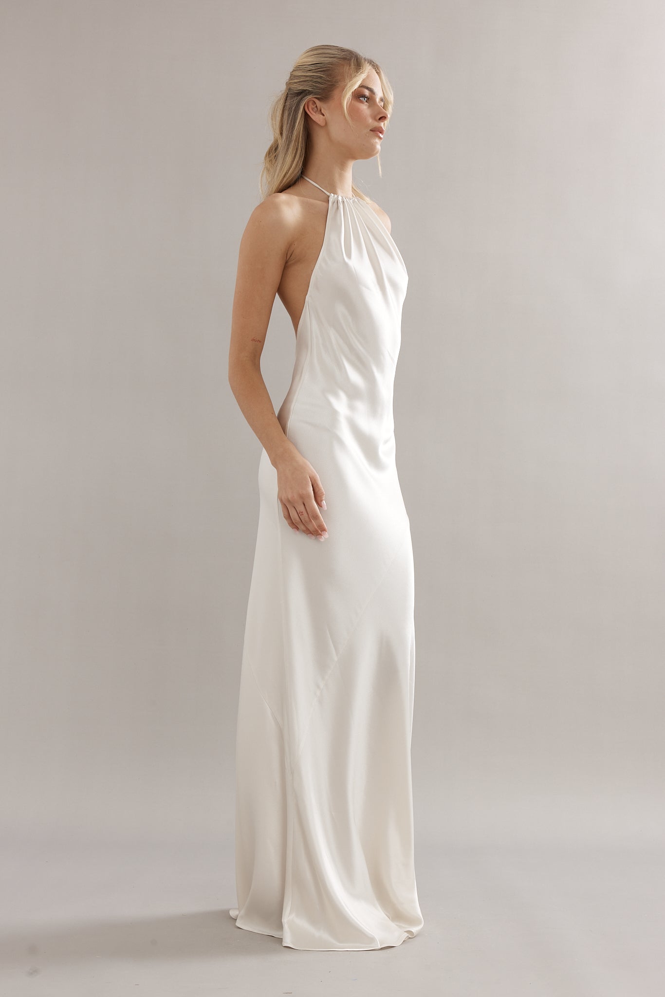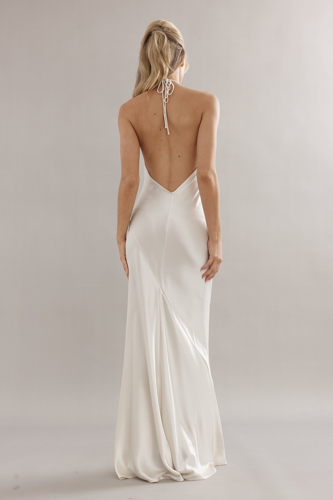 The Melanie Gown is a timeless silhouette, crafted in luxurious silk that skims the body with ease. Featuring a softly gathered neckline, an open back, and a bias-cut design, it moves fluidly with every step. The Melanie combines classic charm with modern flair, perfect for making you feel confident and chic on your special occasion.