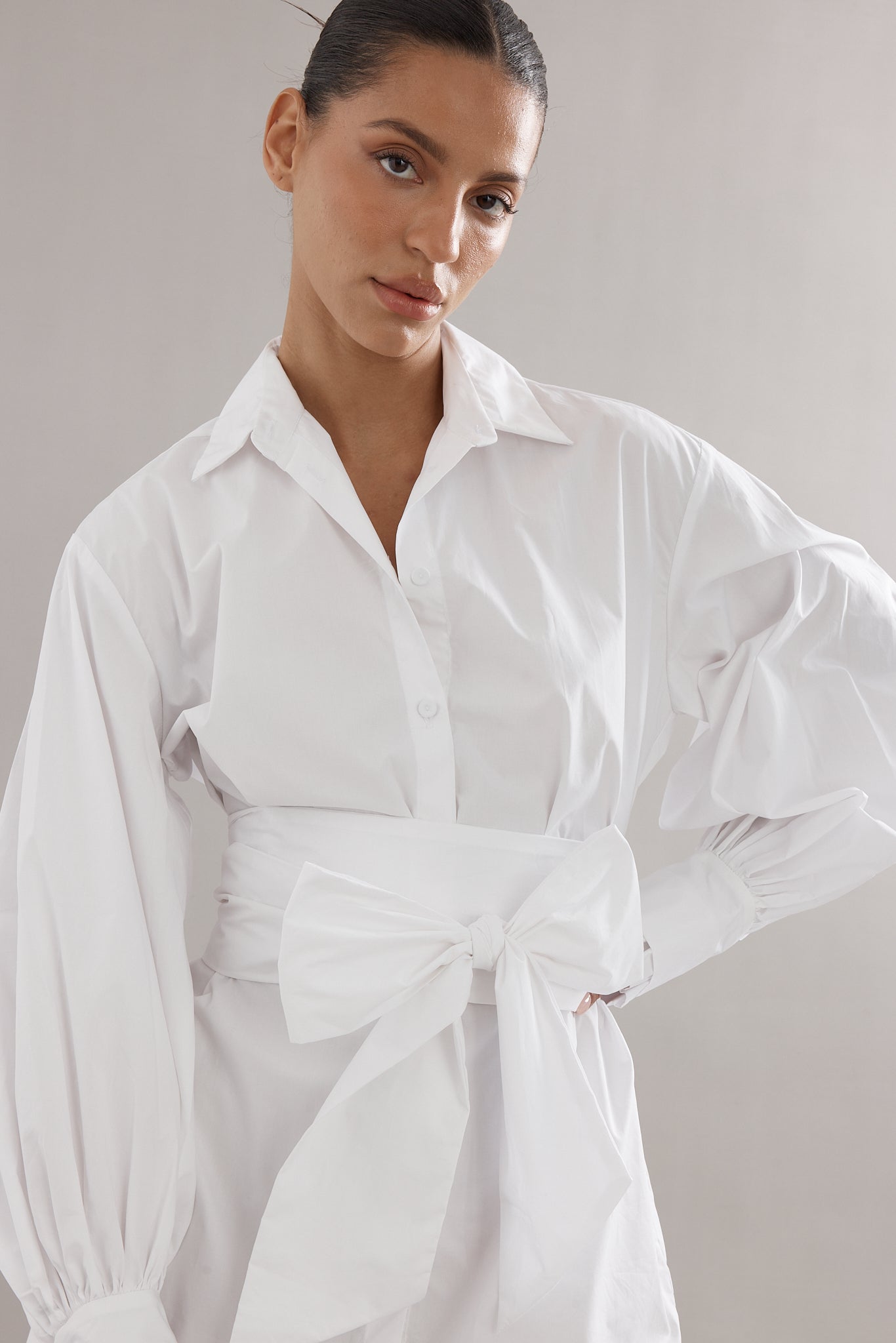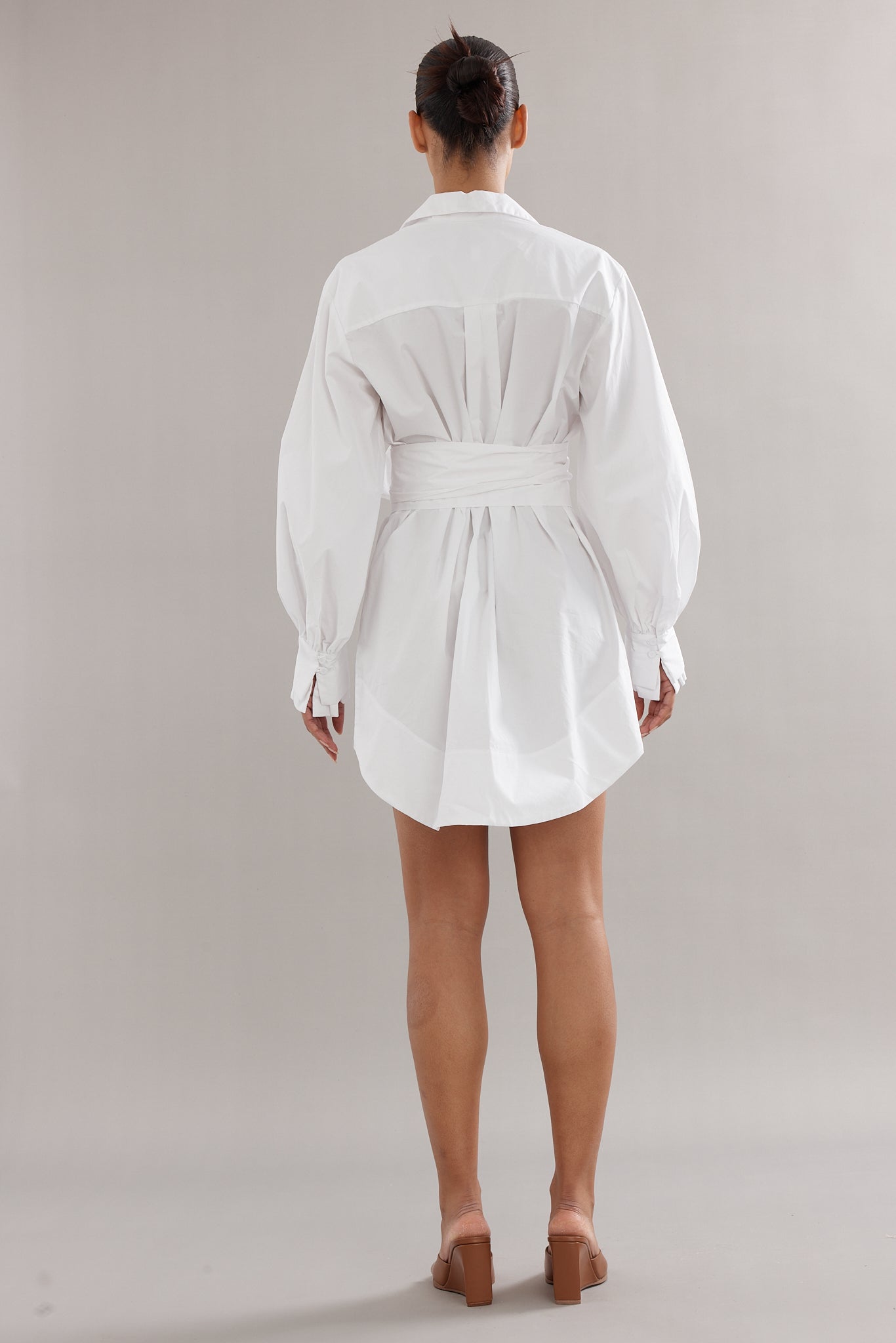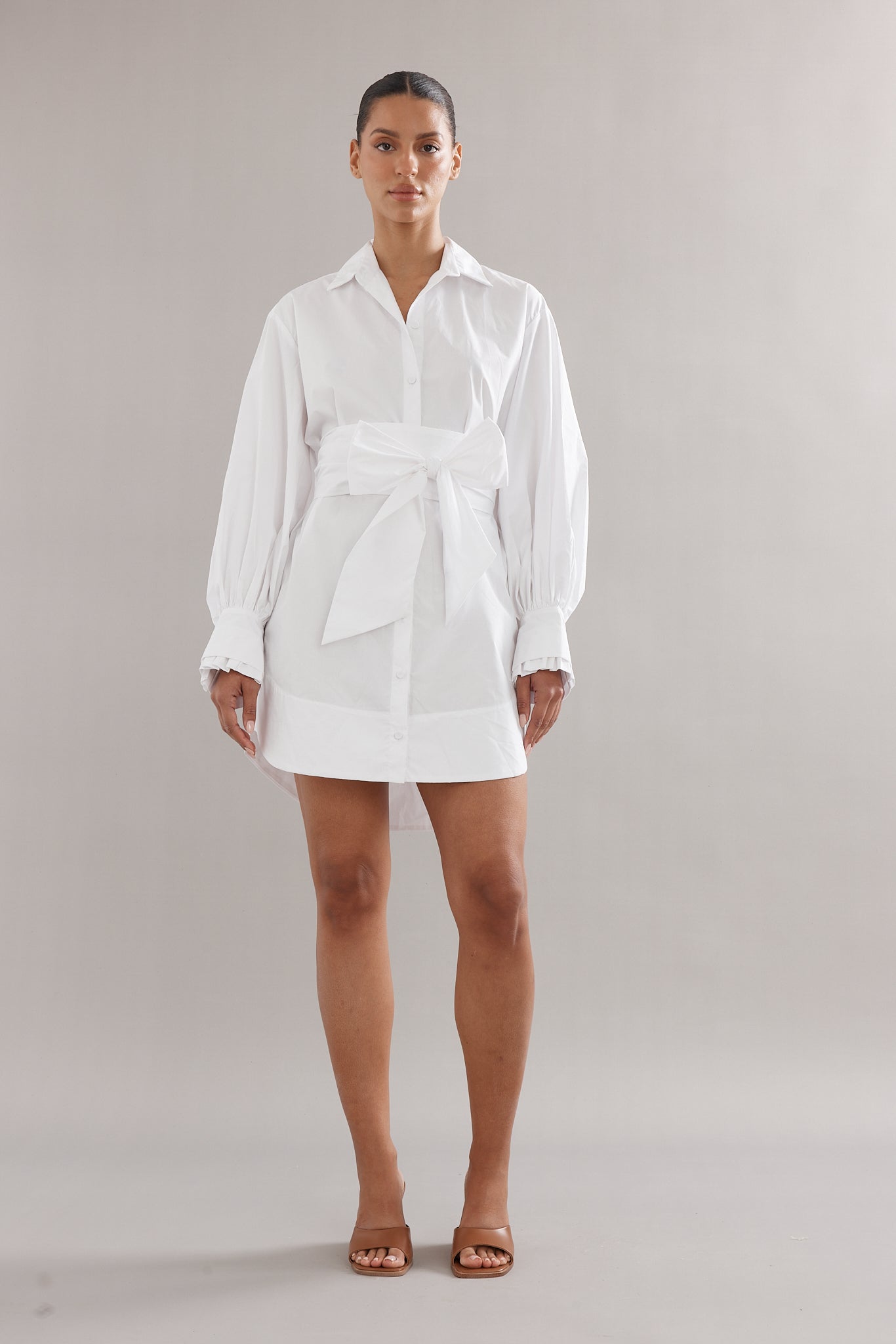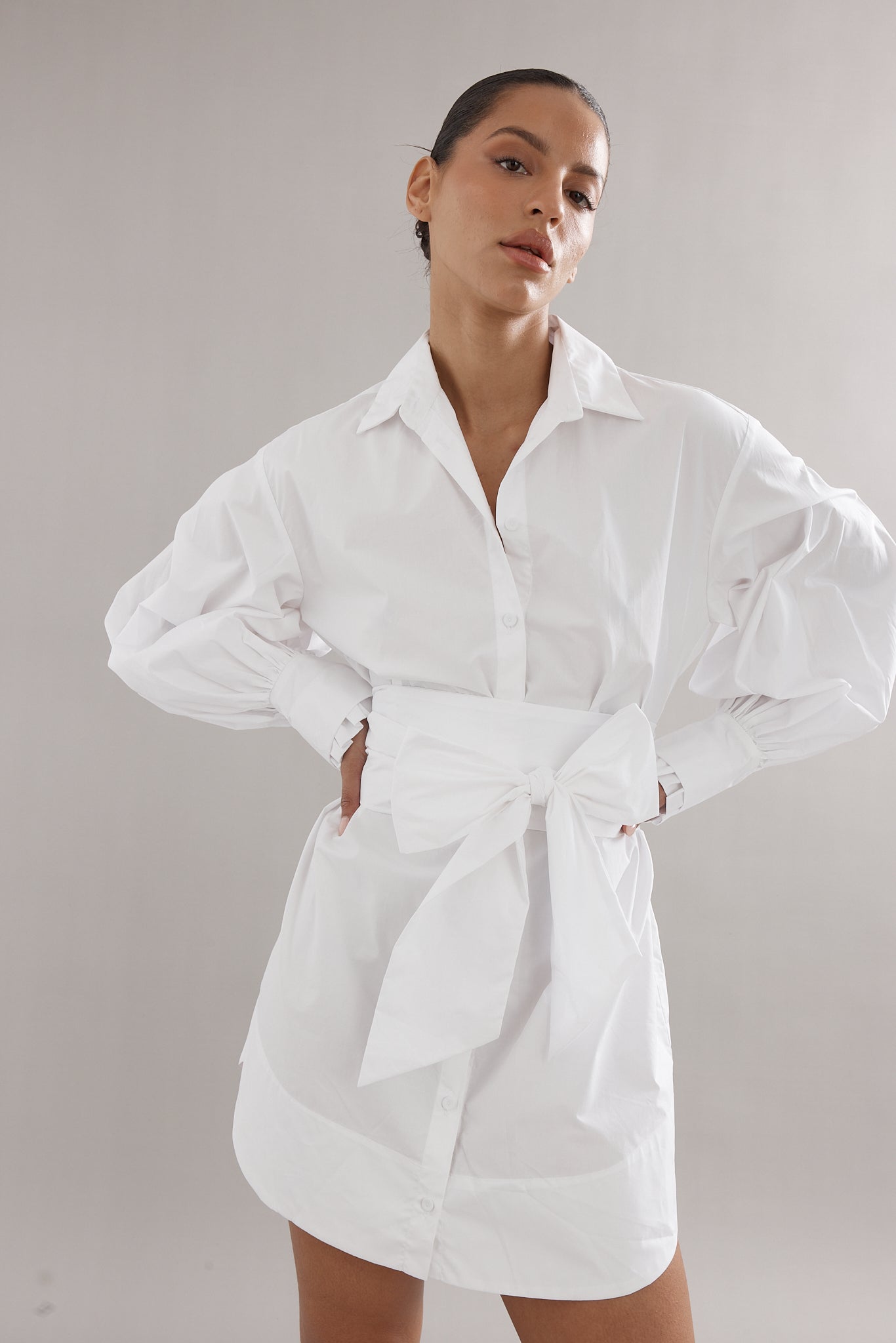 A fresh take on the classic shirt dress, the Mimi Mini in White Poplin blends structure with soft tailoring. Featuring a crisp collar, long sleeves, and a smart silhouette, it’s designed with bow at the waist to cinch in or wear loose. An easy go-to for both casual and elevated looks.