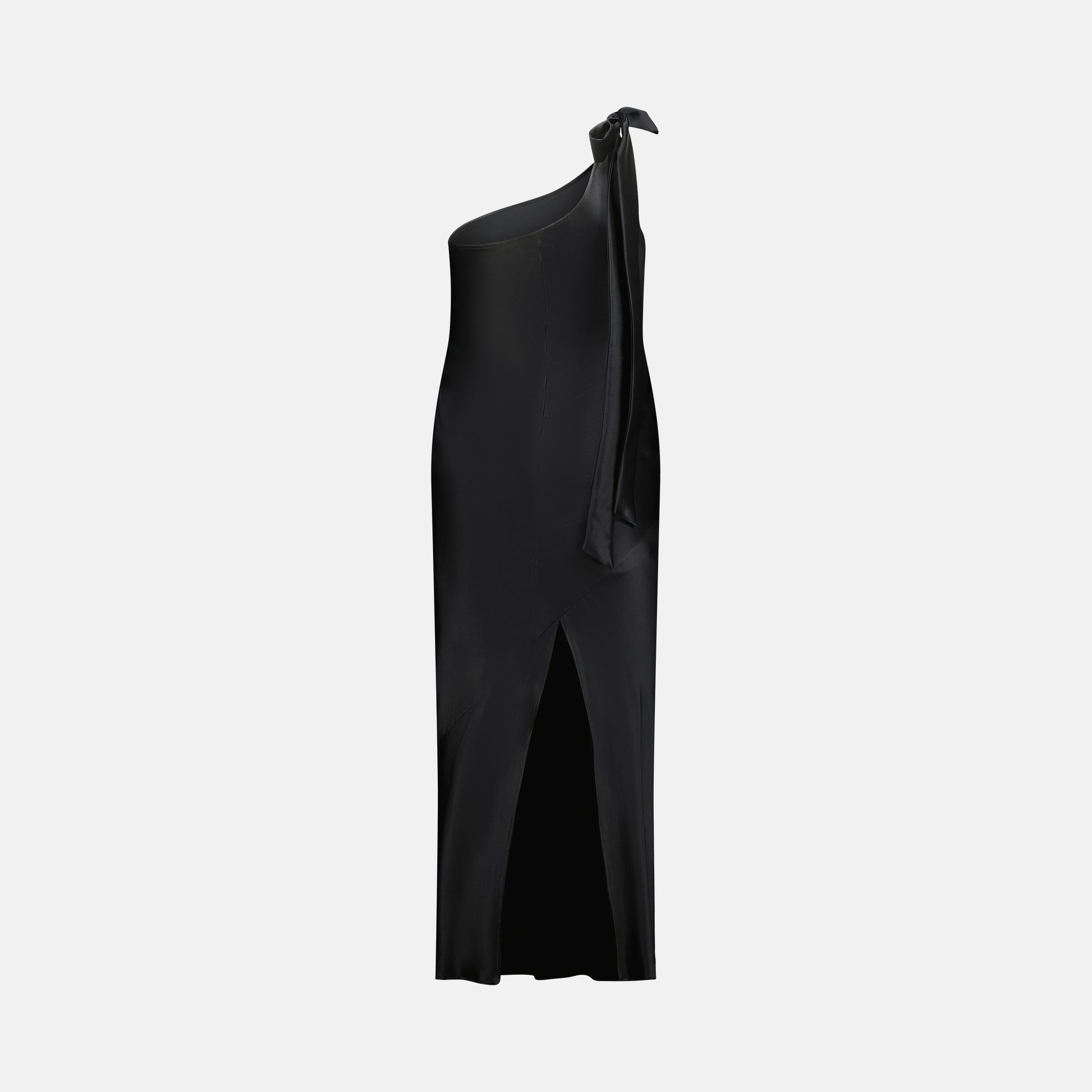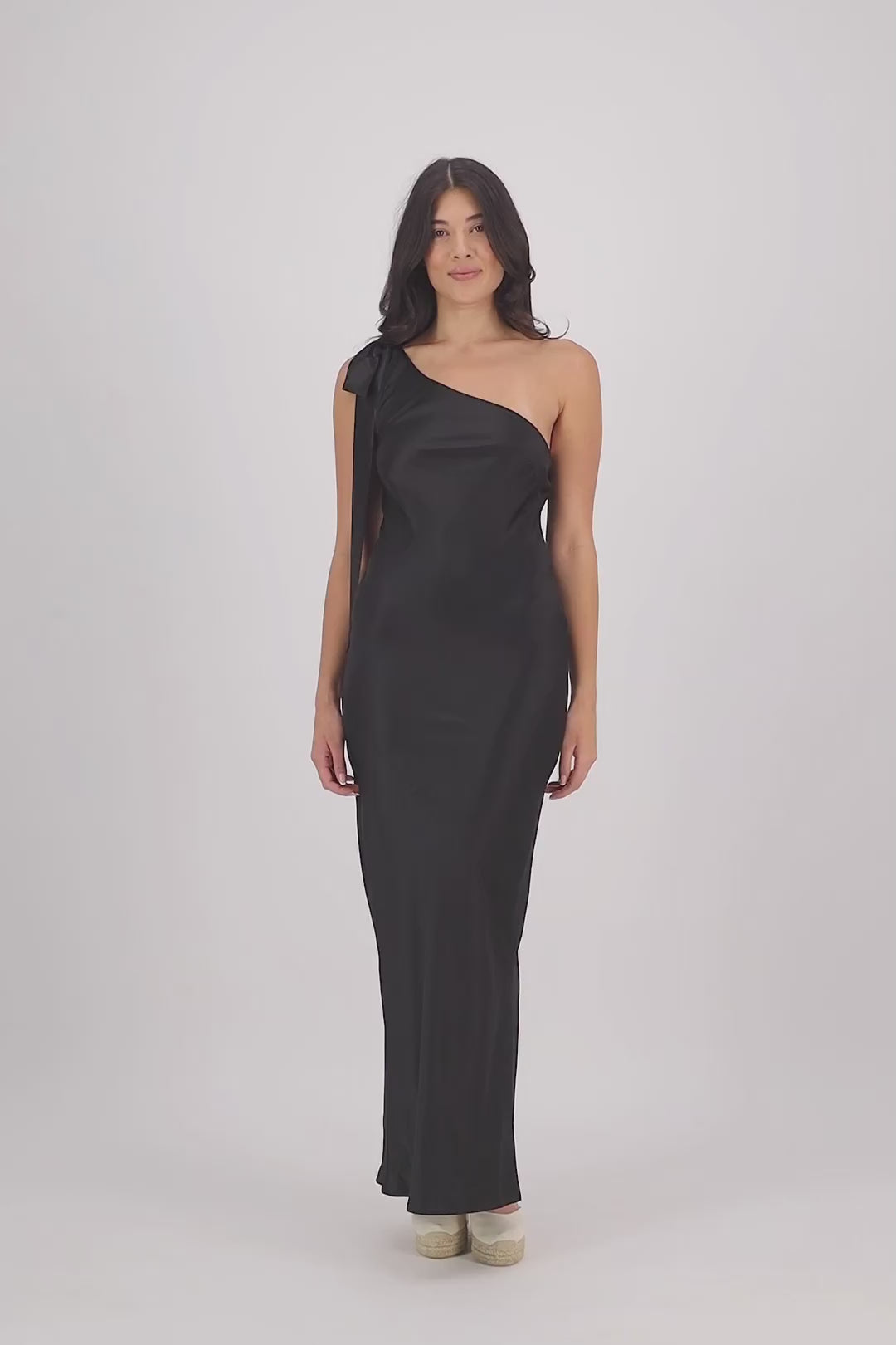 The One Shoulder Wilmer is sleek and elegant dress for any special occasion. Featuring and adjustable shoulder tie and slightly raised back back to allow for a strapless bra. Crafted from 100% luxurious silk.