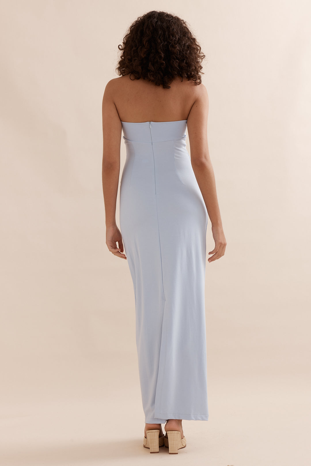 Your Summer evening go-to. Featuring a strapless neckline, split at the back and a full length flattering fit. Made with a touch of stretch for comfort and wearability. Pair with a statement heel for the evening.