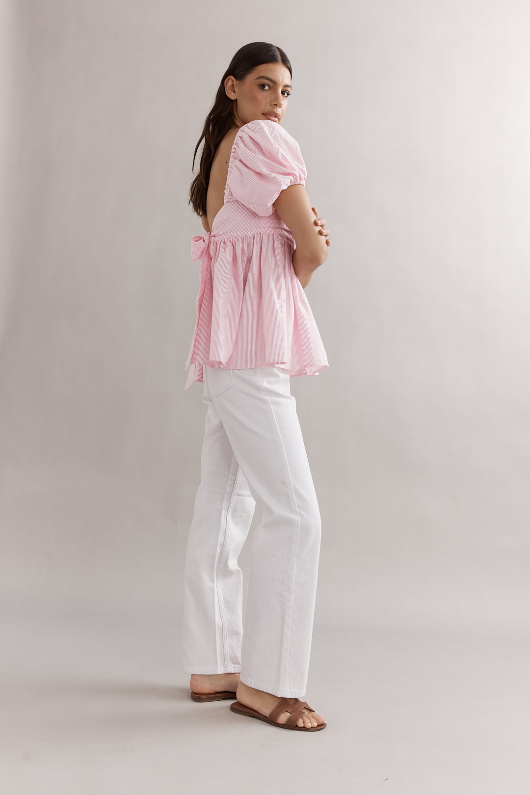 Crafted in a sweet shade of pink, the Piper Bodice stands as the perfect addition to your ‘jeans and a cute top’ rotation. With puff sleeves, a gathered front and of course a CC bow feature at the back - this top is sure to serve you well from picnics to those breezy autumn afternoons.