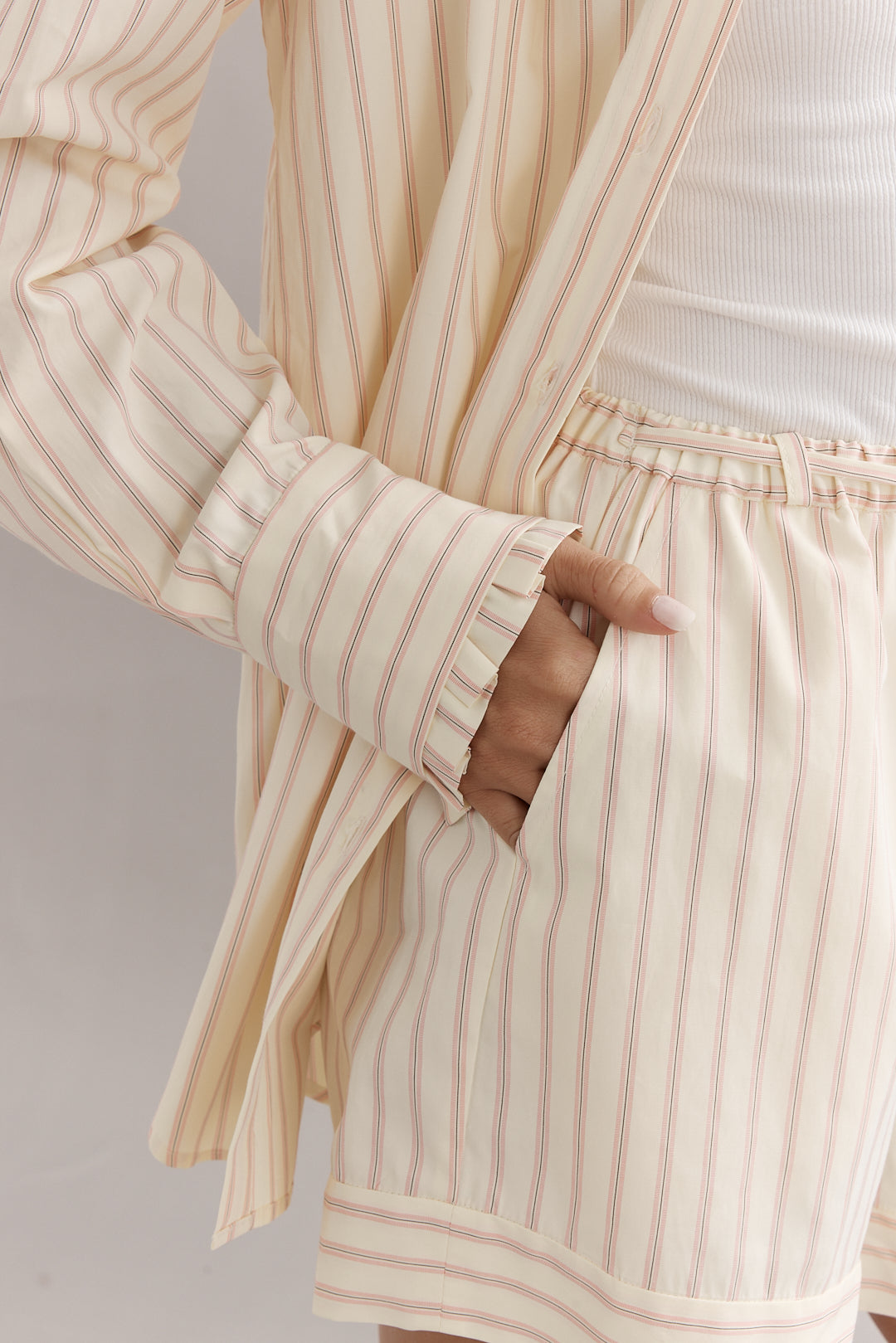 She's back! The Vienna shirt, an oversized design offers a modern, boxy fit, with a delicate frill detailing on the cuffs. Perfect for layering or wearing on its own, the Vienna Shirt is a versatile must-have for any season.