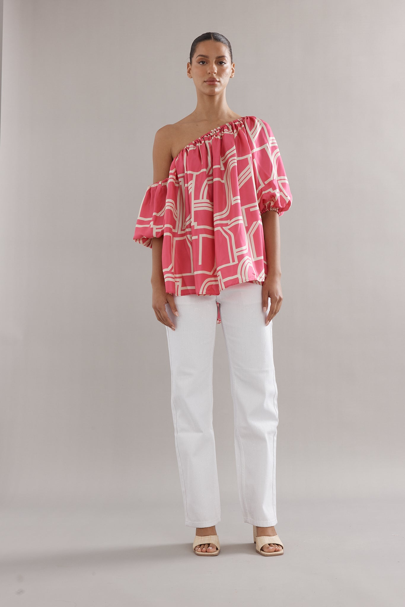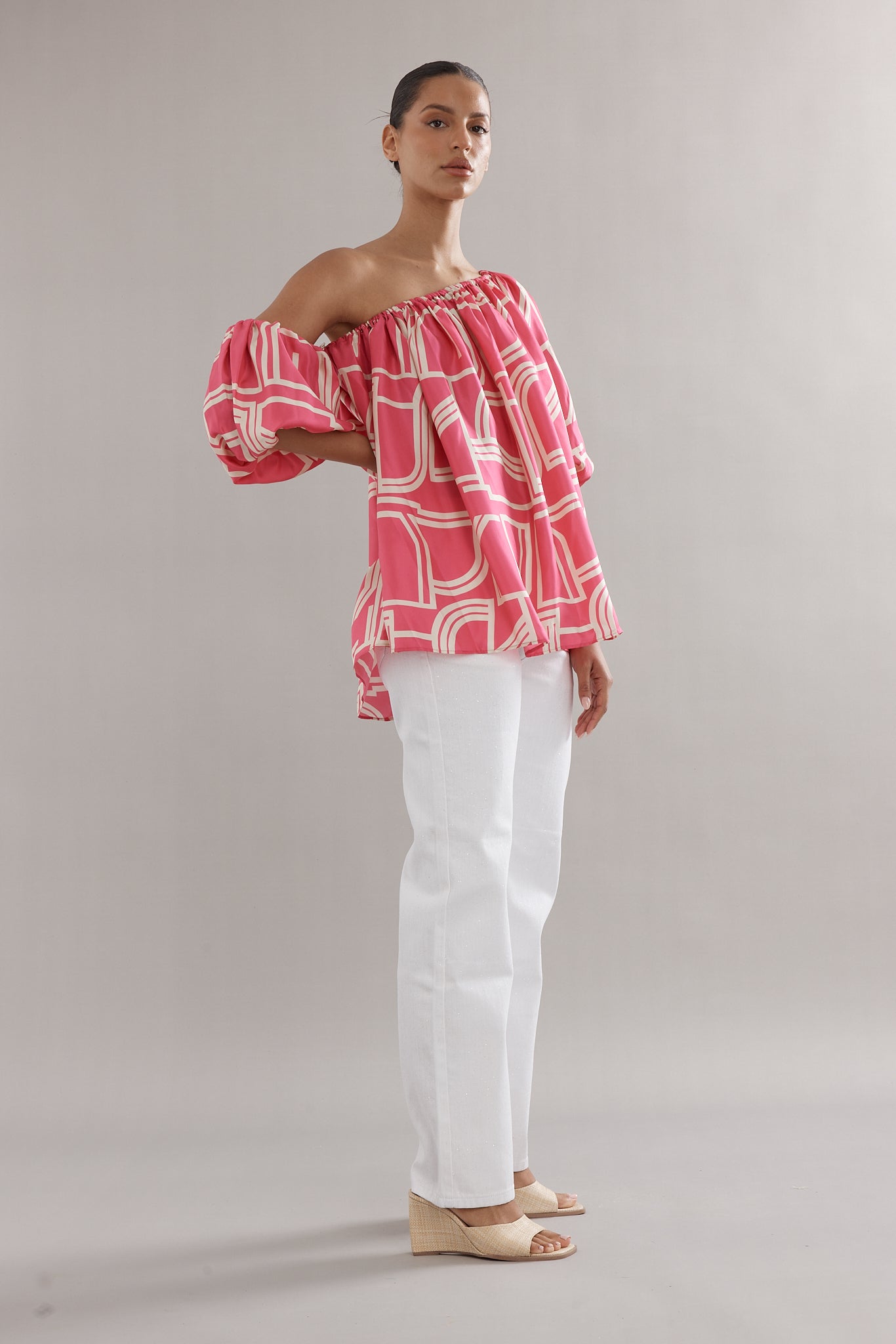 Named after our very own - say hello to statement summer style with the Emmie Blouse in Pink Abstract Silk. Designed to turn heads, it features soft elasticated puff sleeves, with one being detachable for a look that's playful and refined. Cut from fluid silk with a bold abstract print, the Emmie is made for dressing up and dancing.