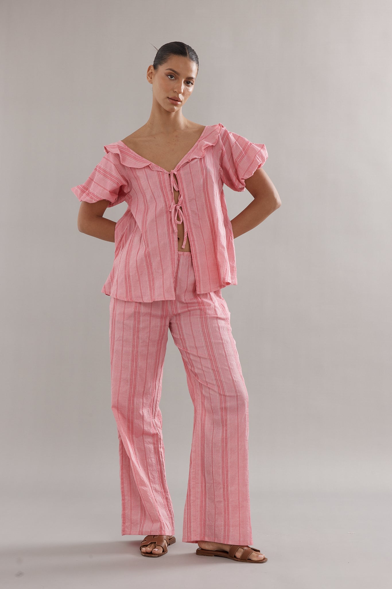 Our delicate little darling blouse in a beautiful pink stripe colourway. Your summer go-to to throw on and go. Pair with the matching Sunday Shorts or Low Tide Pant. The ultimate summer combo.