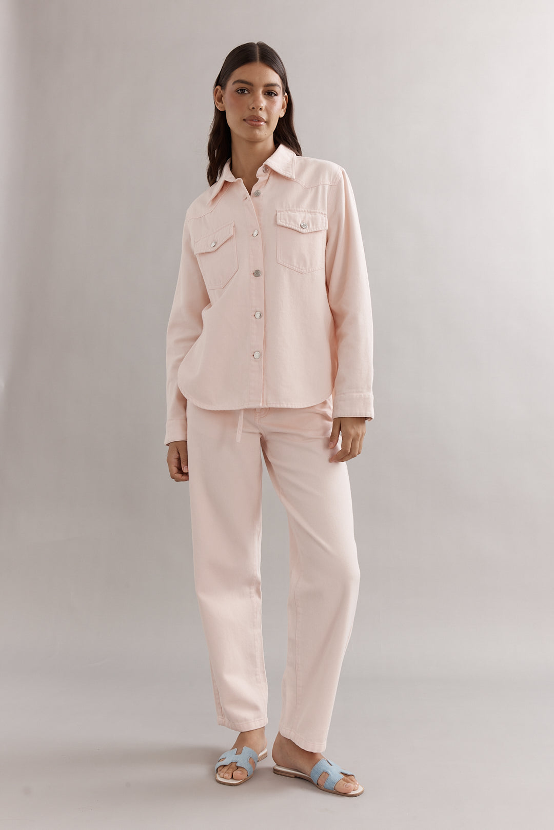 Finished with classic button closures, functional pockets, and clean denim detailing, the is shacket adds a cool, laid-back edge to any look. Wear it open over a tee or buttoned up for a more polished take on everyday denim. Pair with the Leo Jeans for an iconic double denim moment!