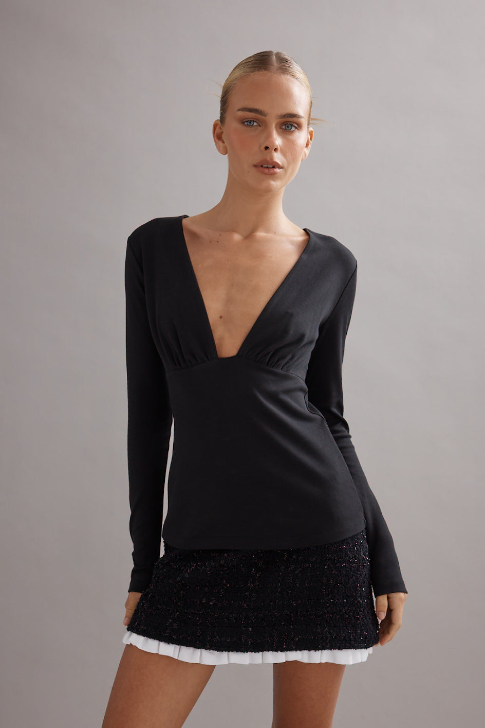 Crafted from soft organic cotton, this long-sleeve top features a flattering deep V neckline and gently gathered bust detail. Perfect with a playful mini or your favourite relaxed jeans, it’s a versatile piece you'll reach for again and again.