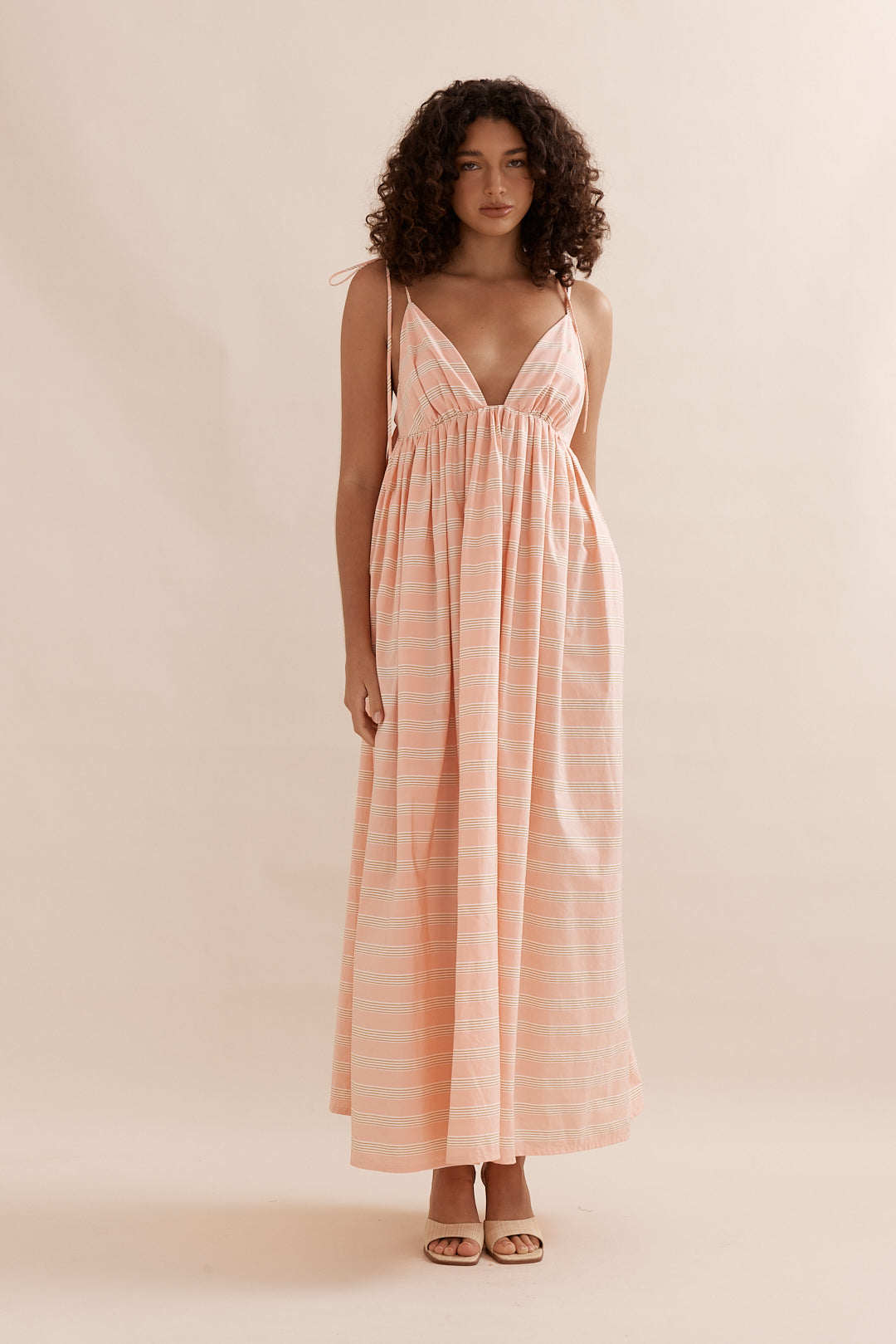 The Esther Dress is a minimalist and chic silhouette that lends itself to both day and evening wear. Featuring a flattering plunge neckline, adjustable shoulder ties and zip closure at the back.