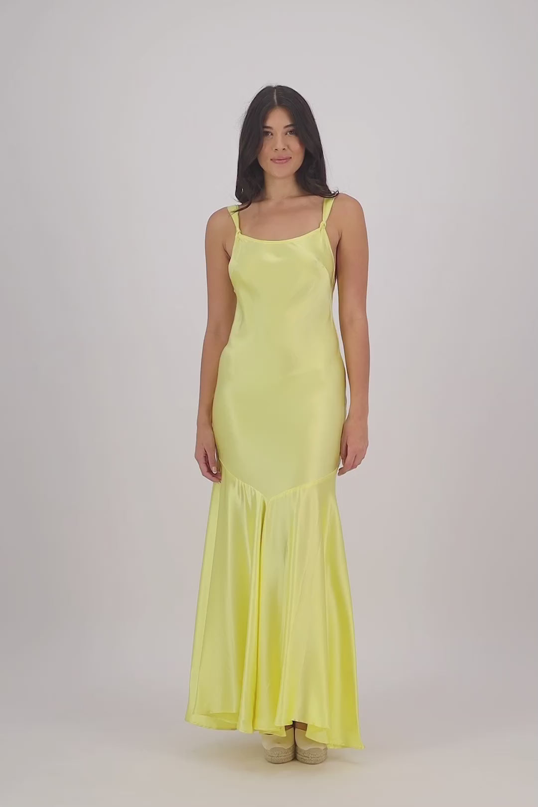 You will fall in love with the Giselle dress with its elegant silk touch and incredibly flattering silhouette that skims the body beautifully. Featuring a fluted bias cut and knotted details.