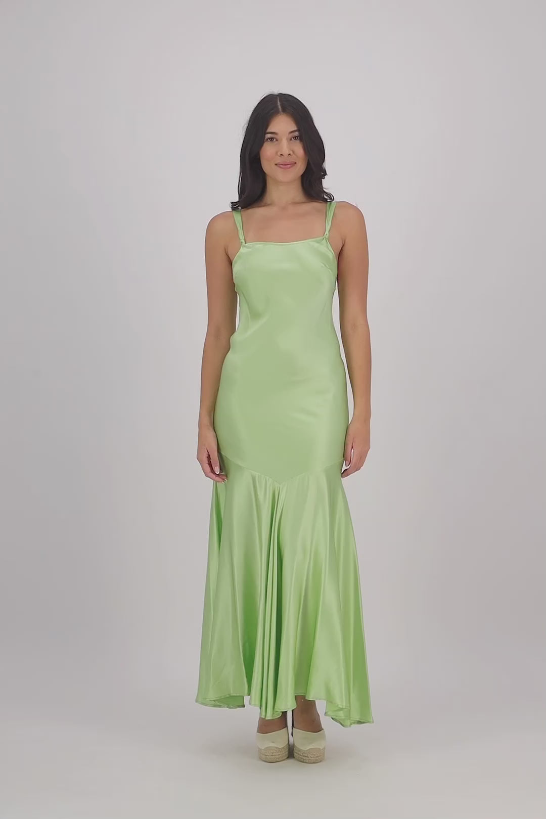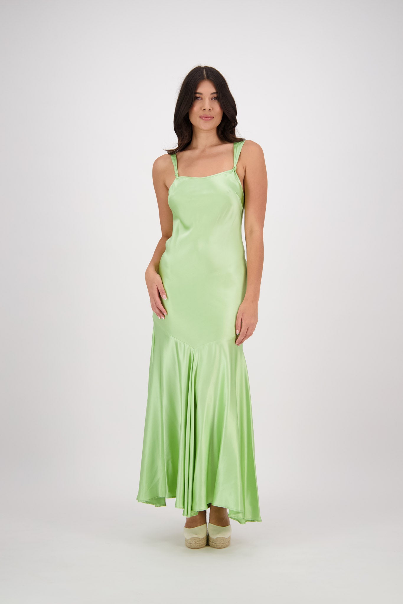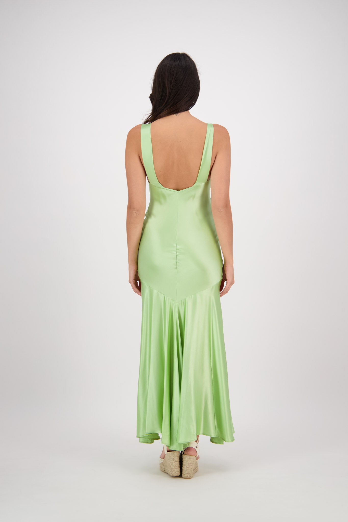 You will fall in love with the Giselle dress with  its elegant silk touch and incredibly flattering silhouette that skims the body beautifully. Featuring a  fluted bias cut and knotted details.