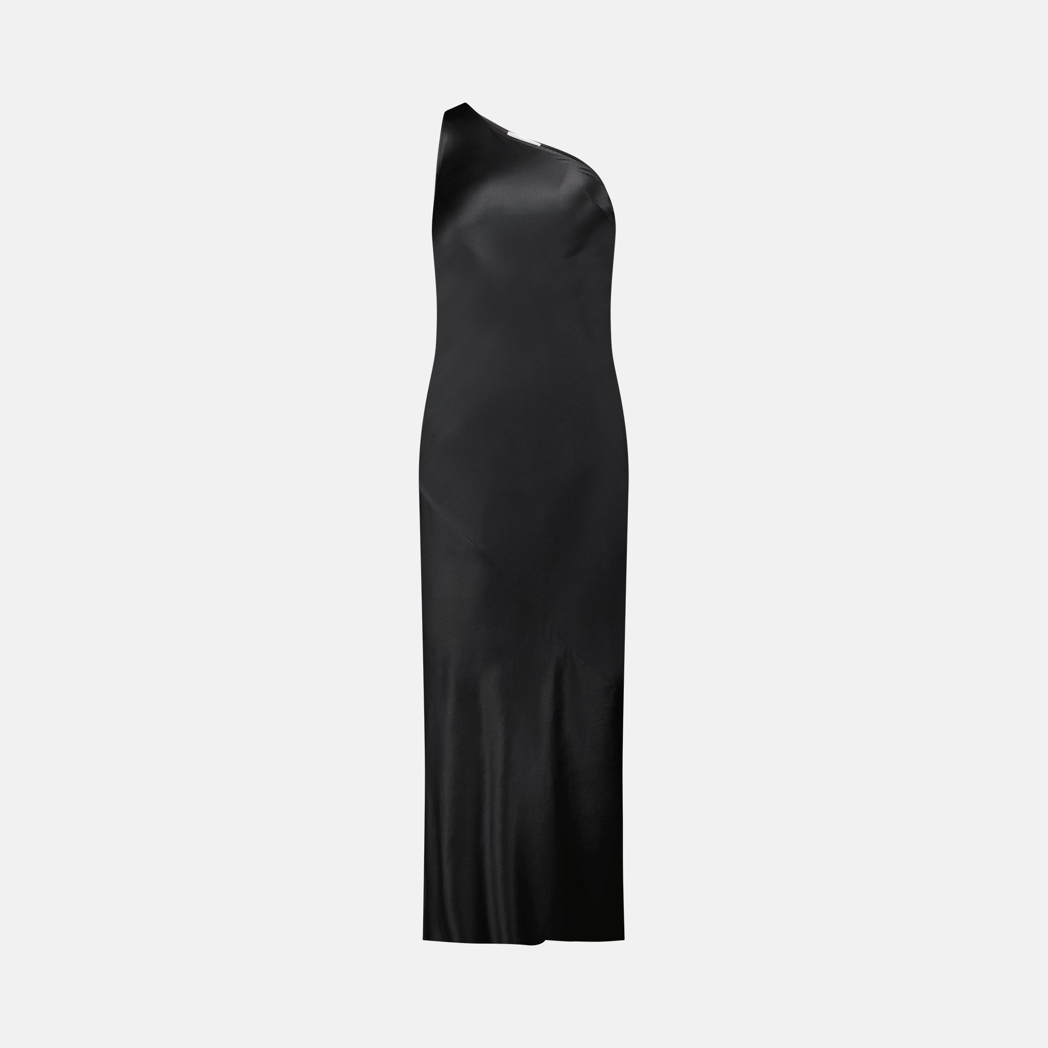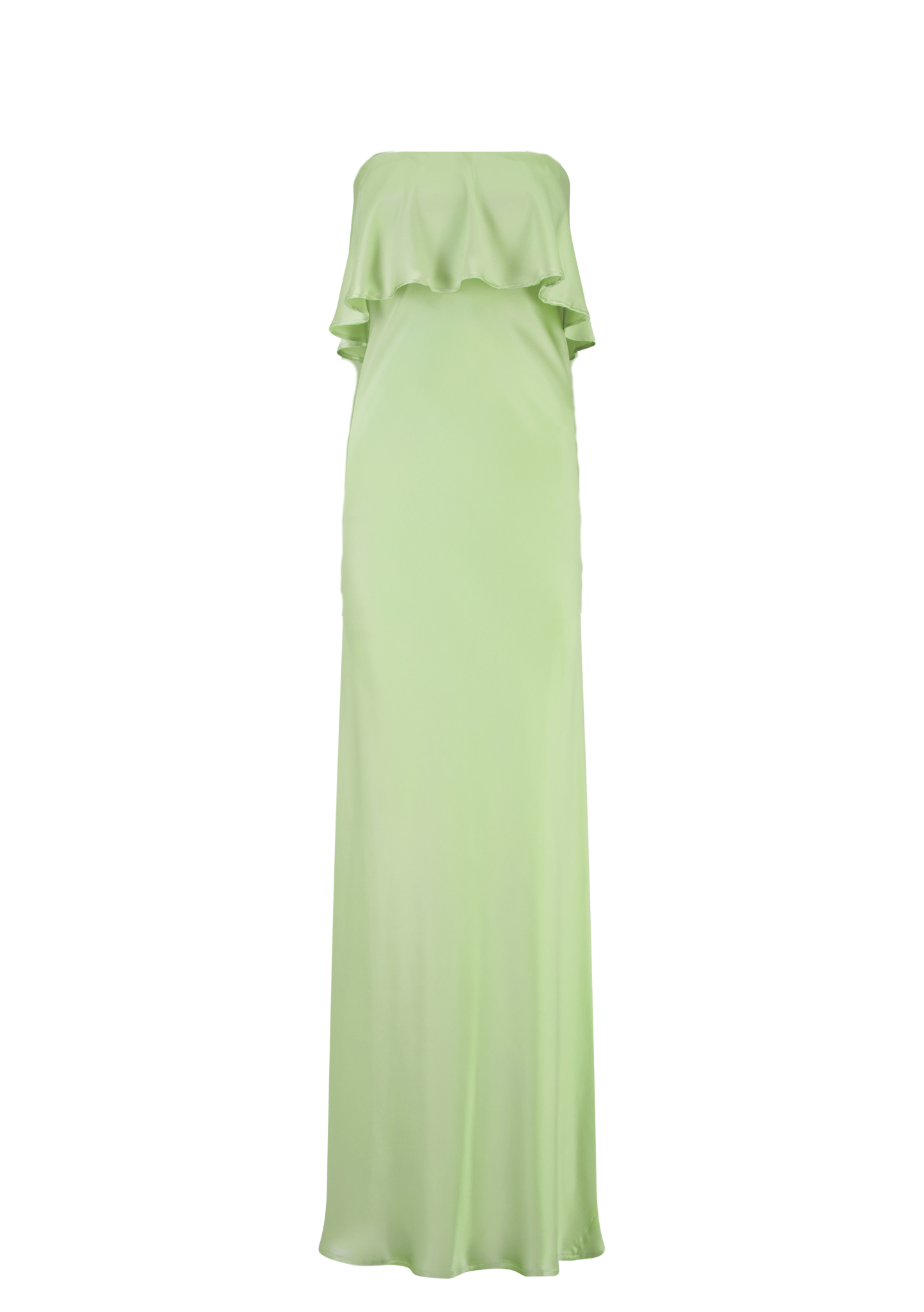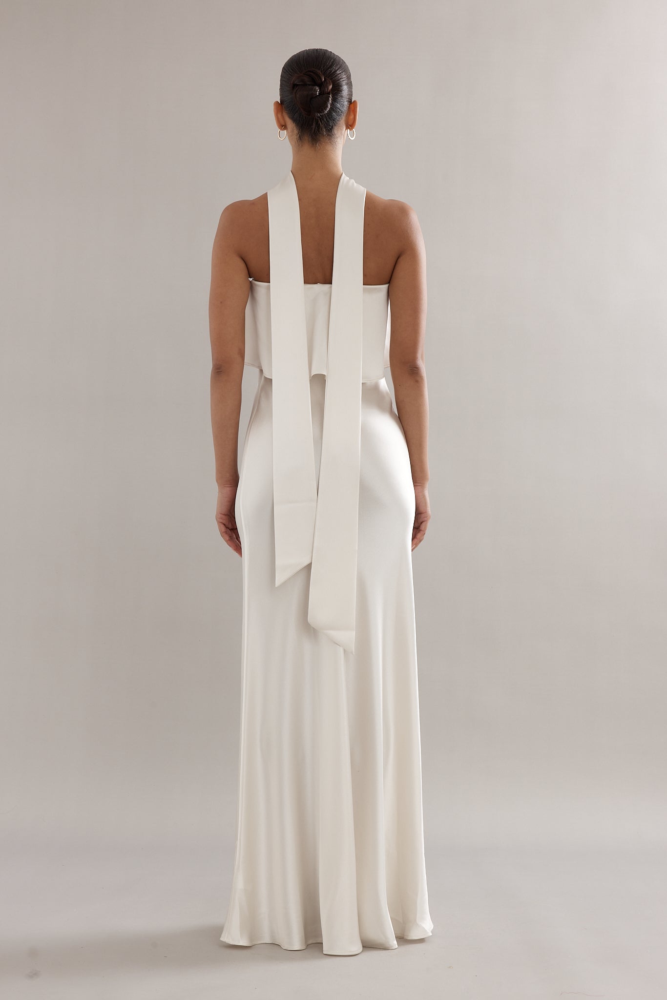 The Goldie Gown - Cut on the bias, this strapless silhouette moves beautifully with you. Featuring a soft frill detail and a detachable necktie for a touch of drama. Style it with simple heels and let the dress do the talking.