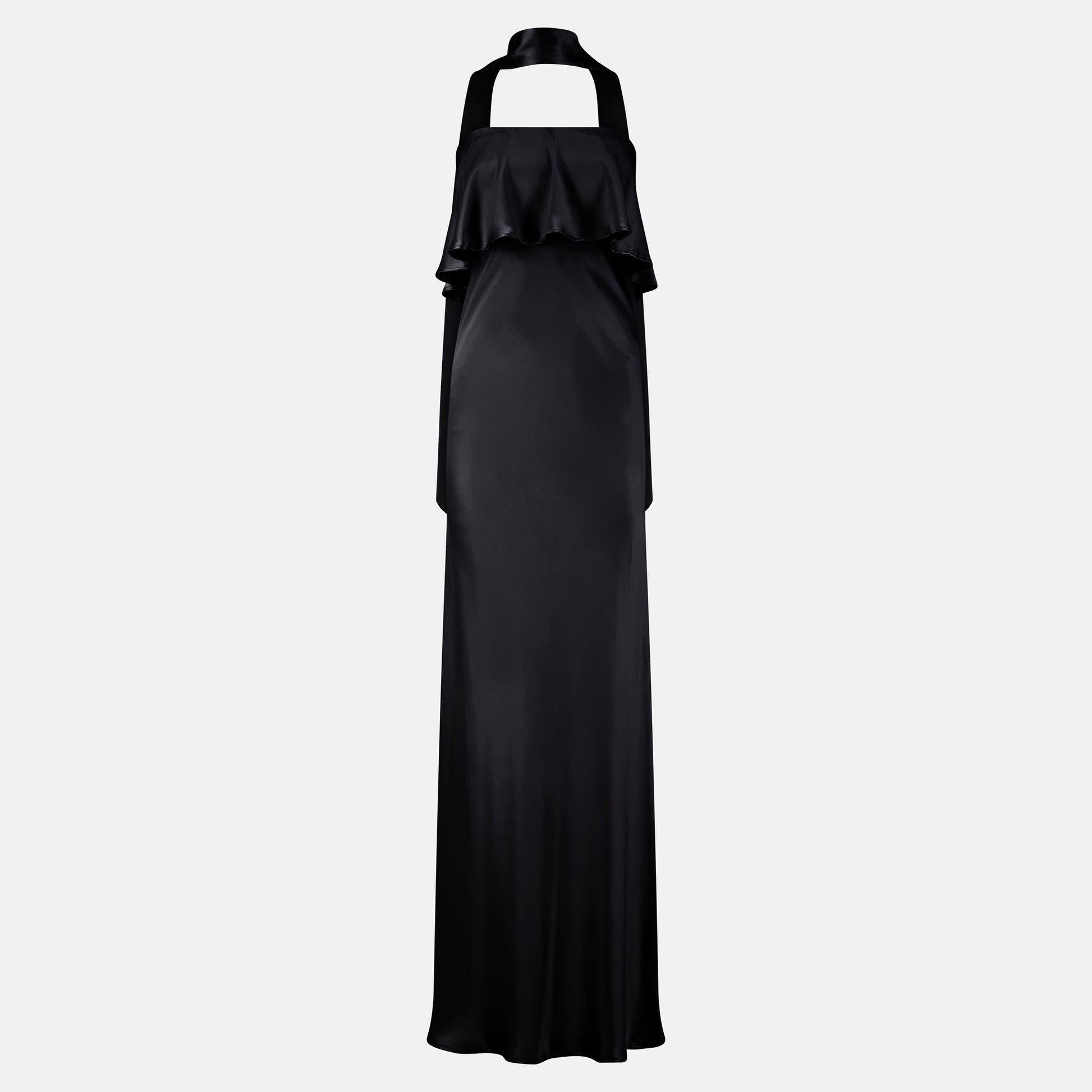 Crafted from 100% silk and cut on the bias, this strapless silhouette moves beautifully with you. Featuring a soft frill detail and a detachable necktie for a touch of drama. Style it with simple heels and let the dress do the talking.