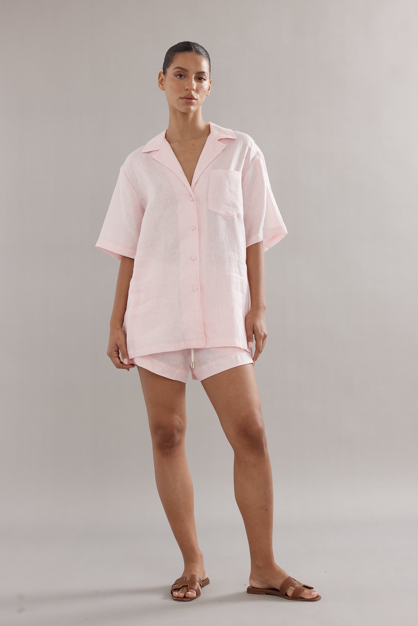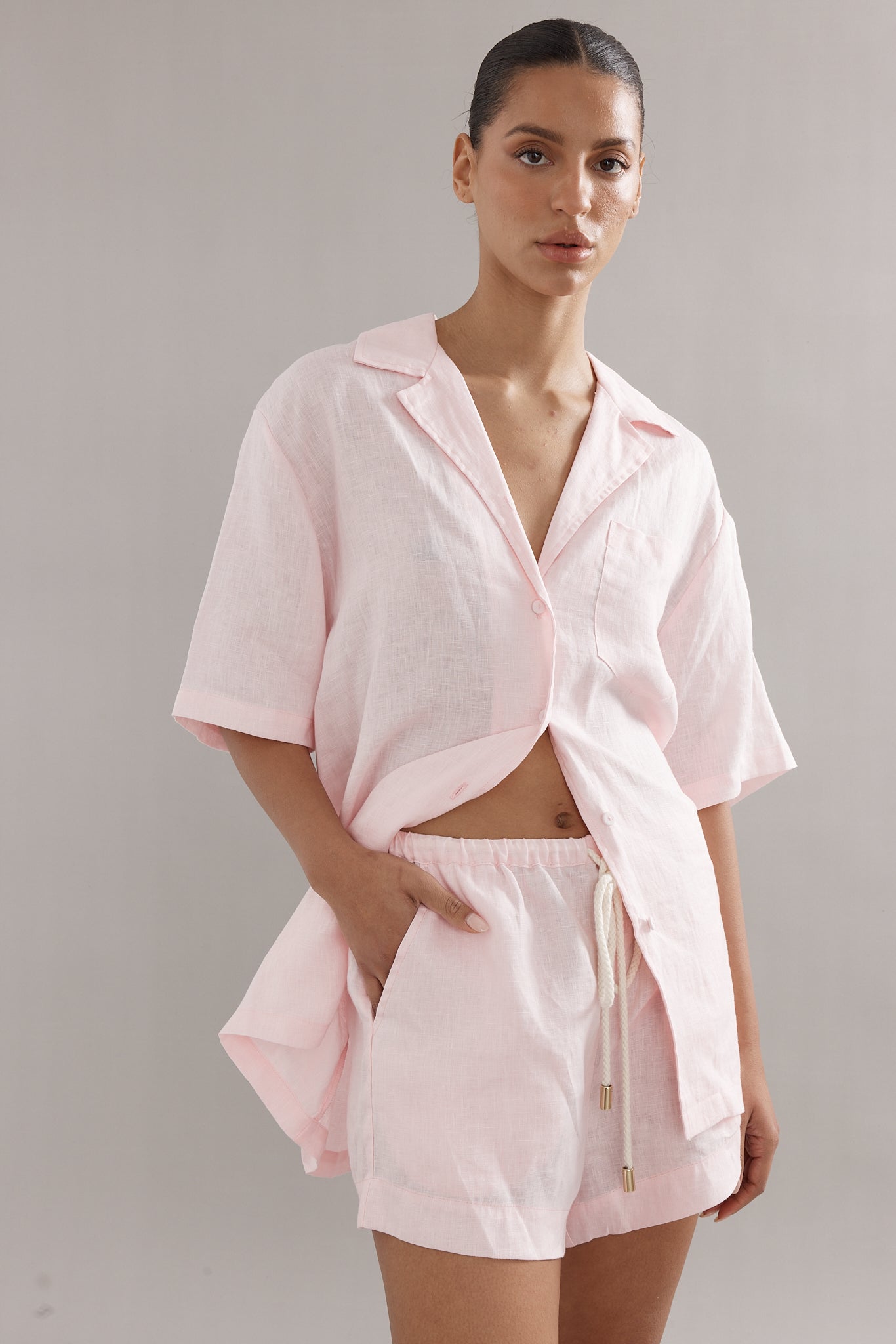 The perfect blend of luxury and comfort. The Ibiza Shirt is the epitome of relaxed chic. Style it with the matching Jimmy Joggers in Pink Linen!