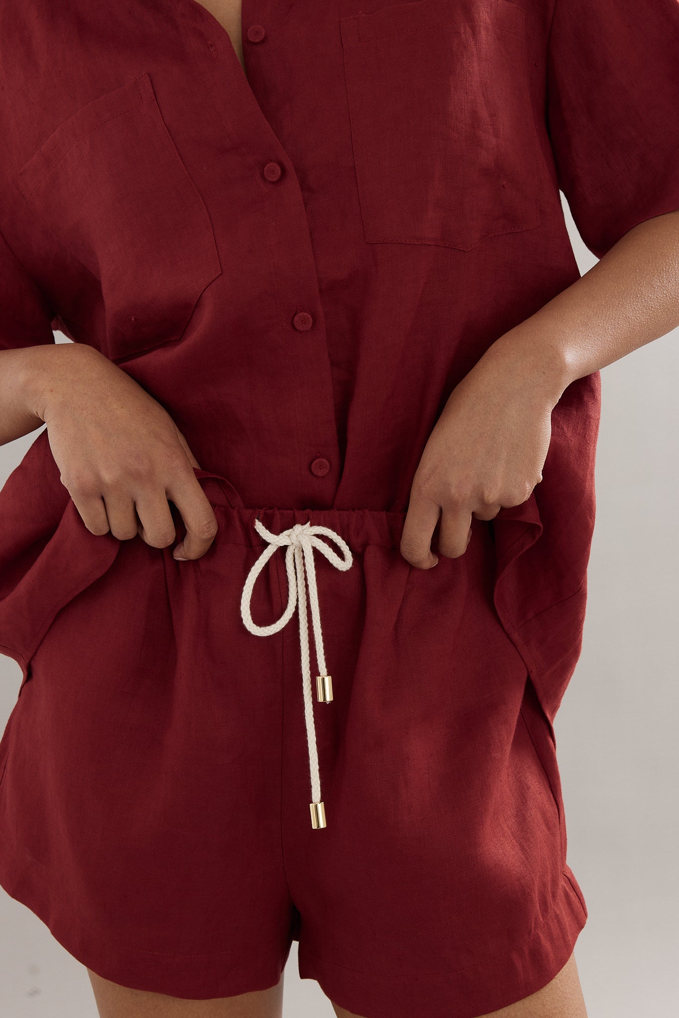 Breeze through summer in our new Juno Shorts. Designed for relaxed, sun-soaked days, these shorts feature a flattering silhouette in a beautiful maroon linen. We recommend taking your standard size in this Short!