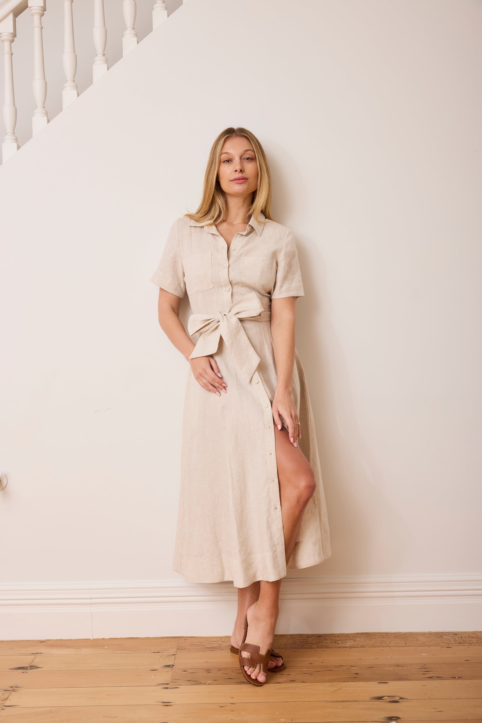 For a classic look, pair the Lady Vincent Dress with a Summer sandal and a wide brim hat. Featuring a tie at the waist, side pockets and a collar for the sophisticated CC lady.