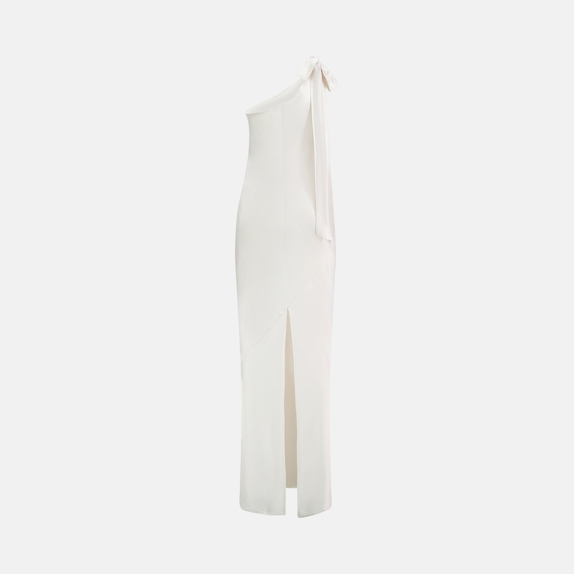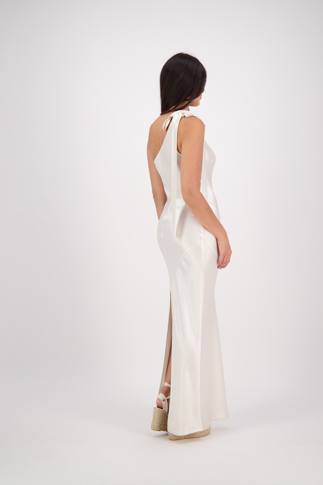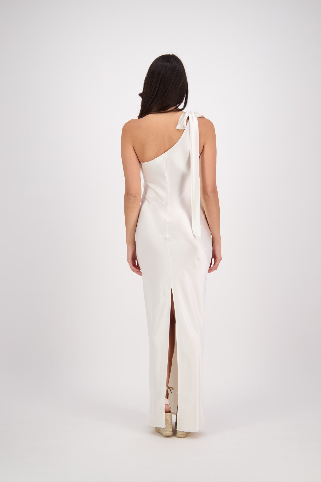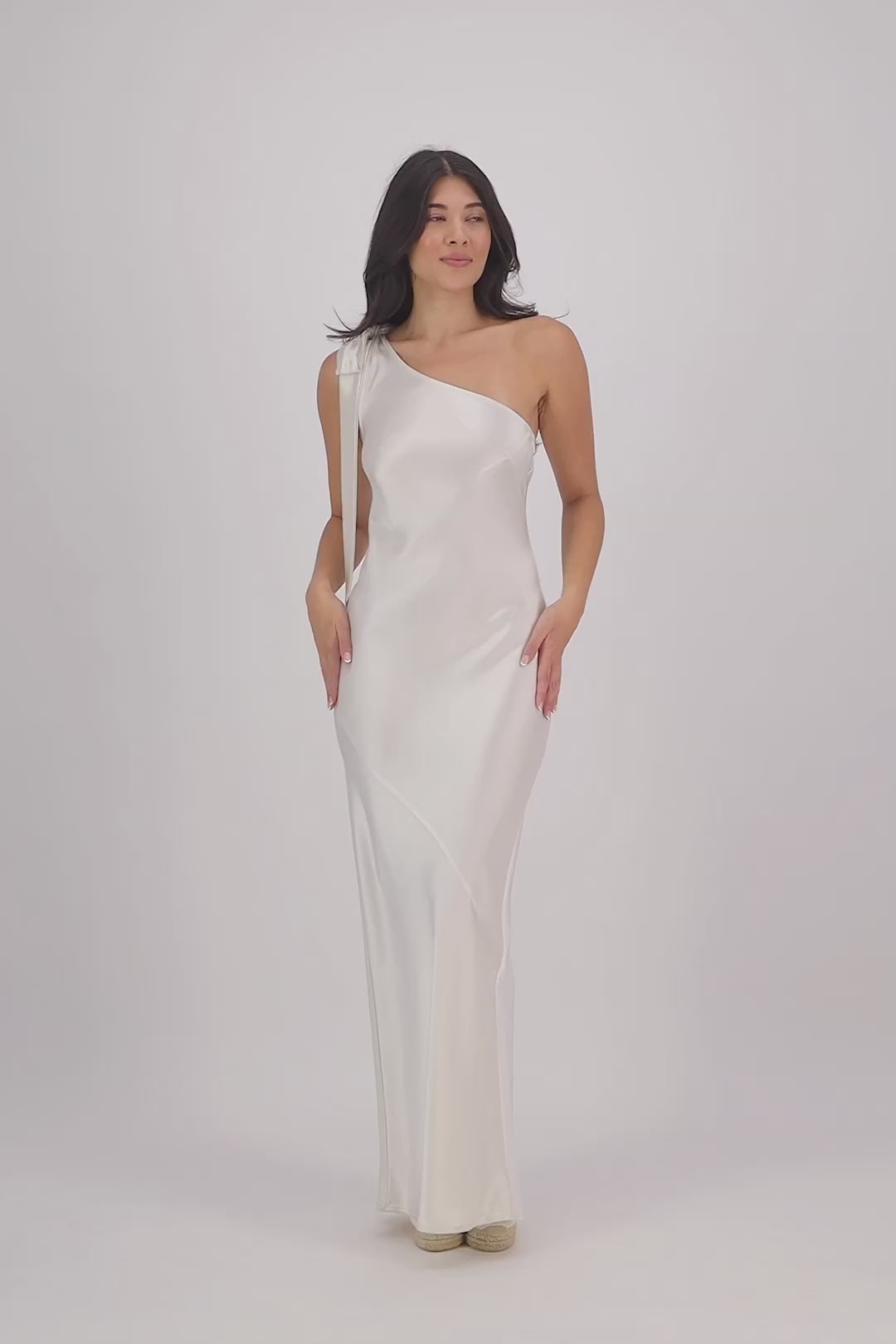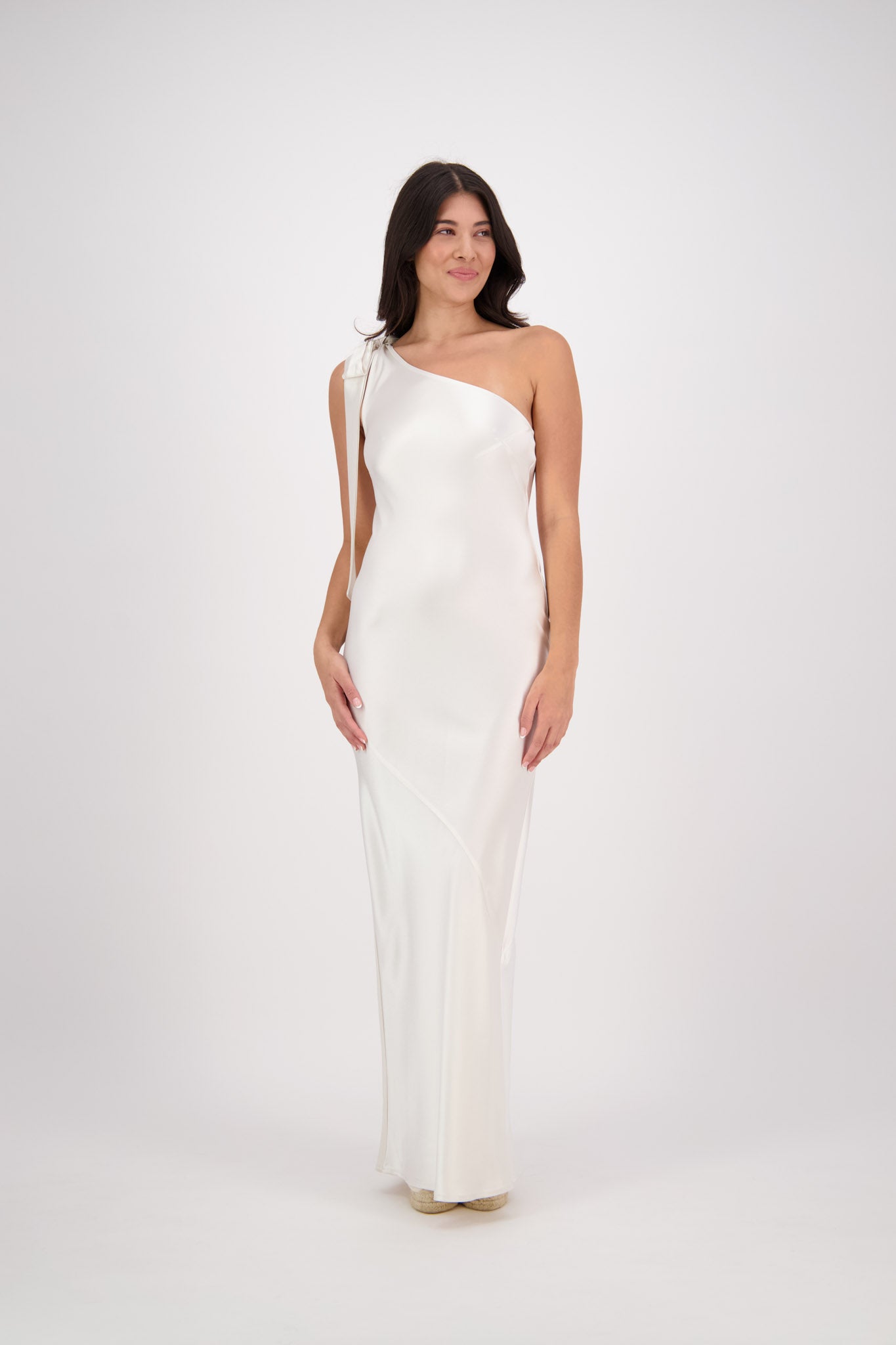 The One Shoulder Wilmer is sleek and elegant dress for any special occasion. Featuring and adjustable shoulder tie and slightly raised back back to allow for a strapless bra.