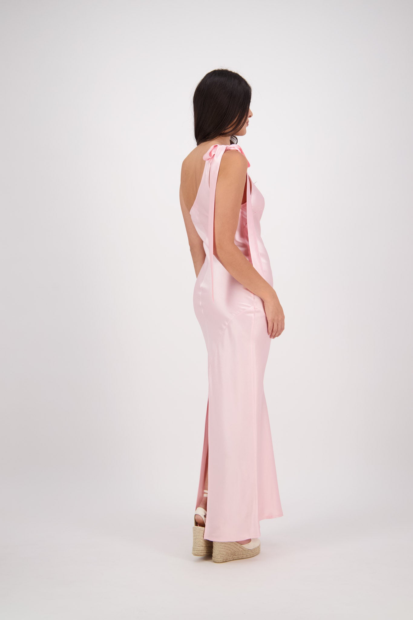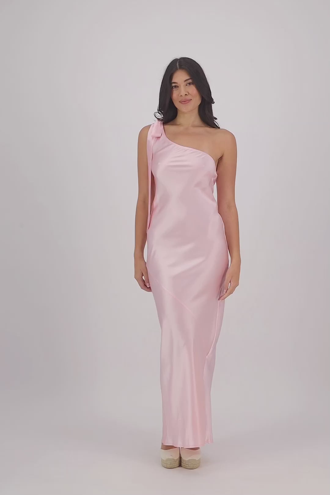 The One Shoulder Wilmer is sleek and elegant dress for any special occasion. Featuring and adjustable shoulder tie and slightly raised back back to allow for a strapless bra. Crafted from 100% luxurious silk.