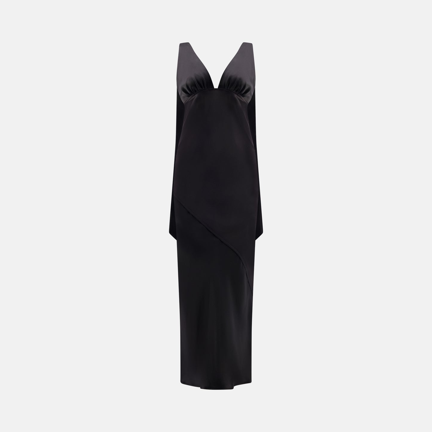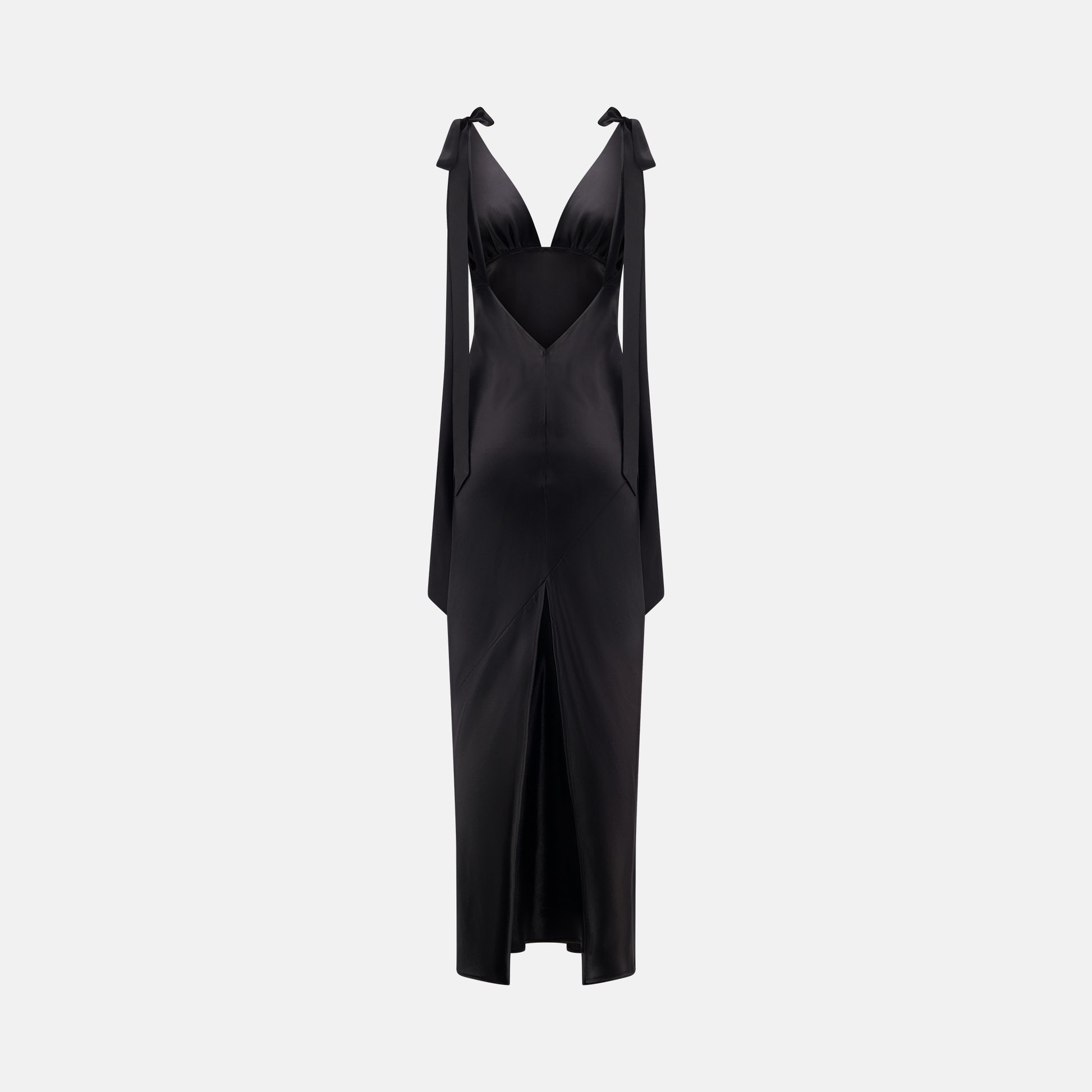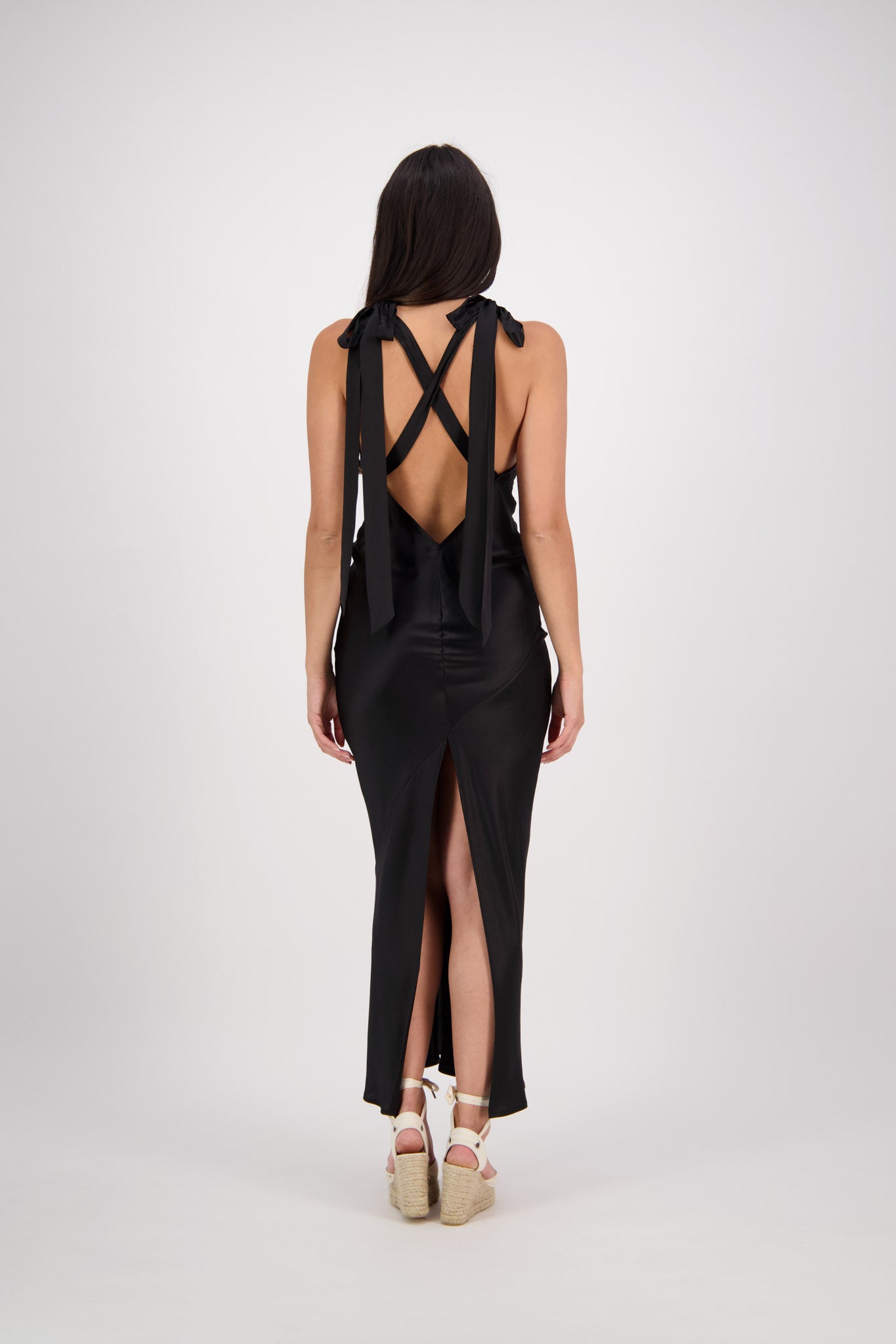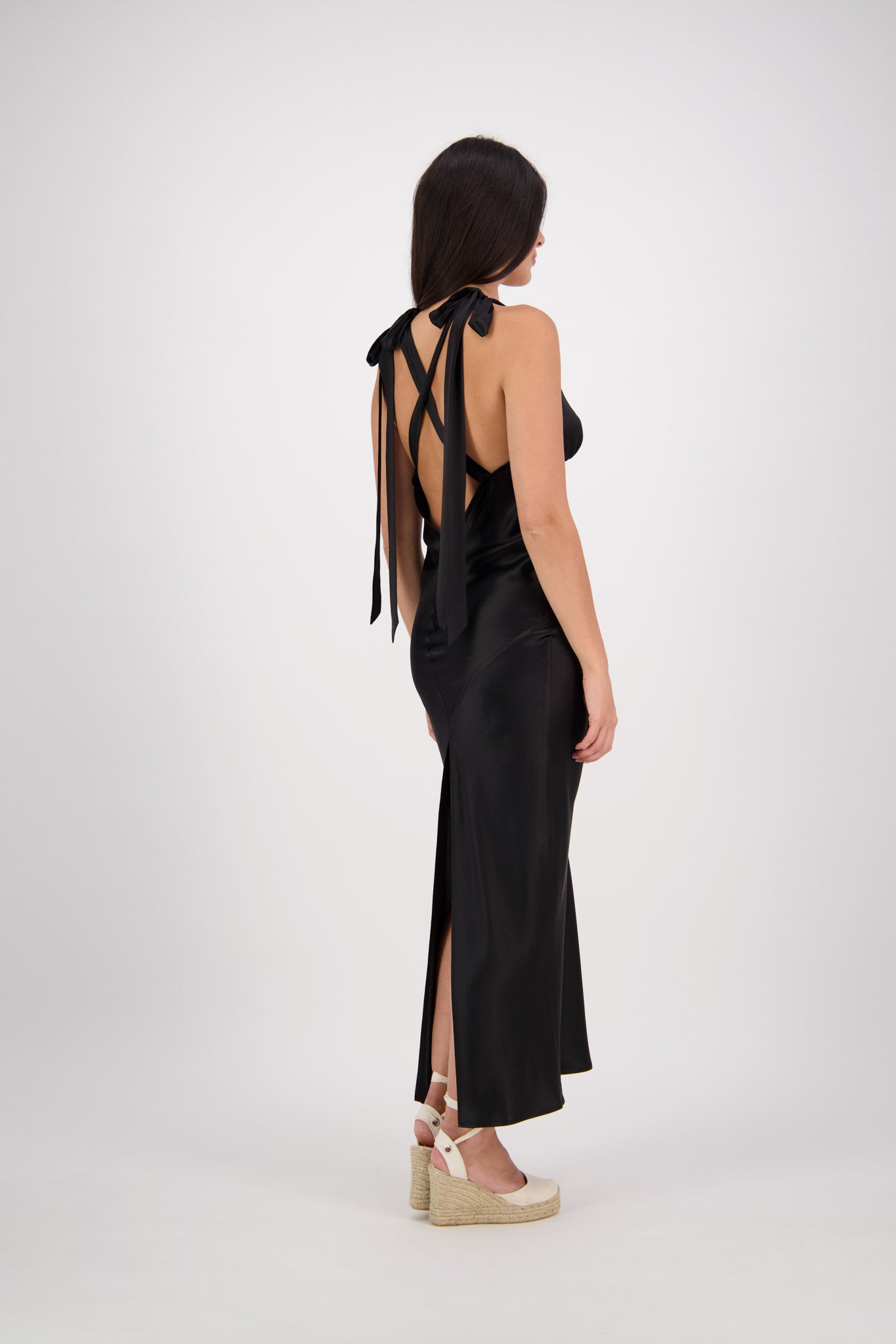 The all new Riley. It's the Little Rosie and Tie Back Dress reimagined in a beautiful silk bias cut style. Featuring a V neck shape, adjustable shoulder ties and plunging back neckline.