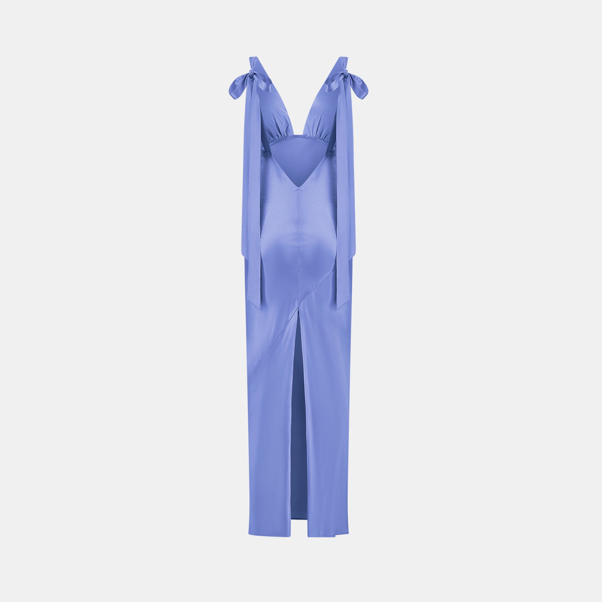The all new Riley. It's the Little Rosie and Tie Back Dress reimagined in a beautiful silk bias cut style. Featuring a V neck shape, adjustable shoulder ties and plunging back neckline.