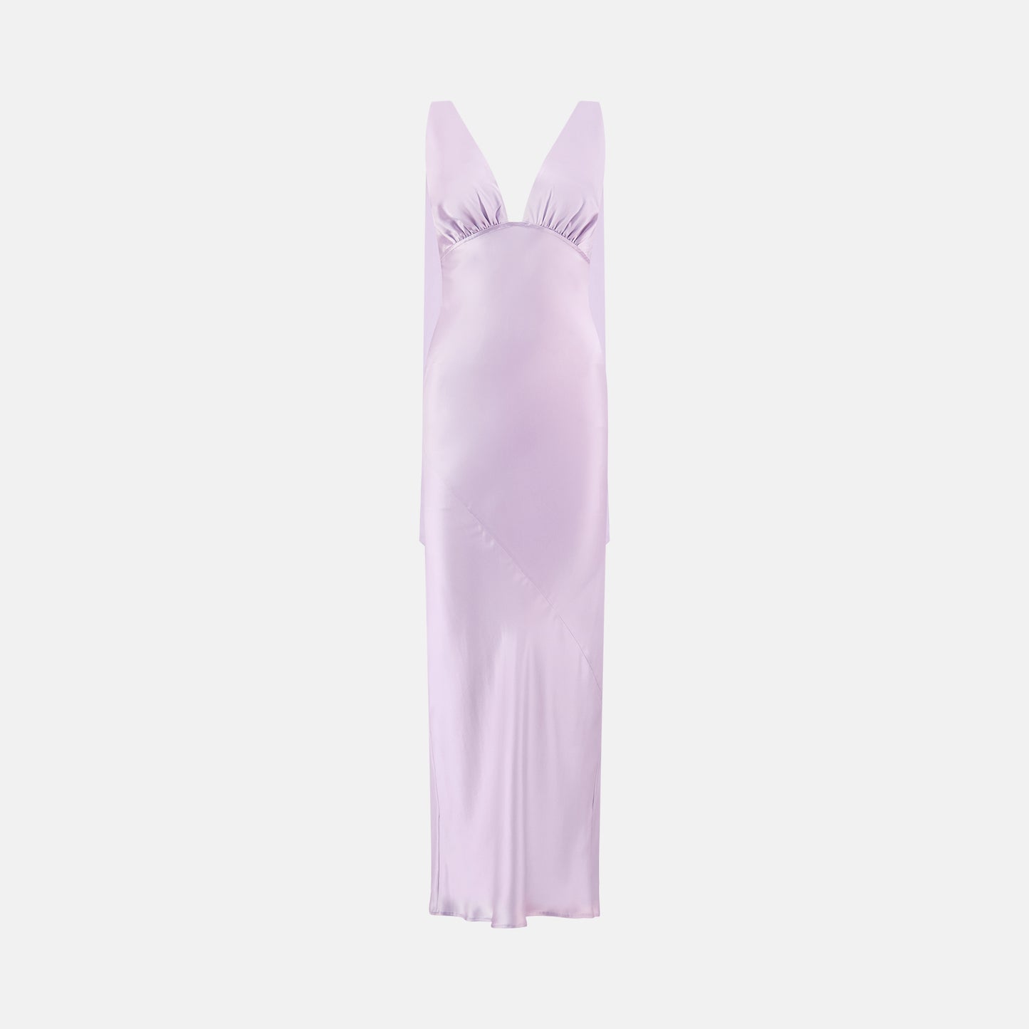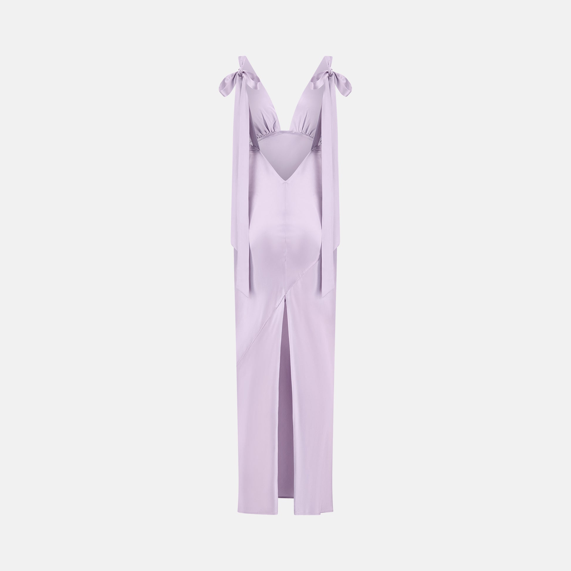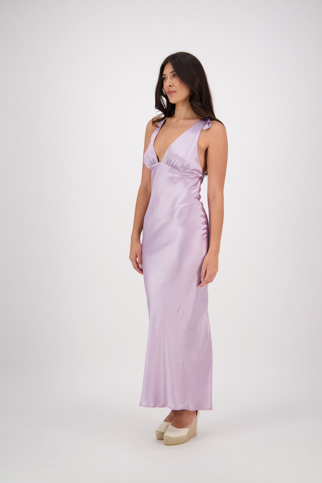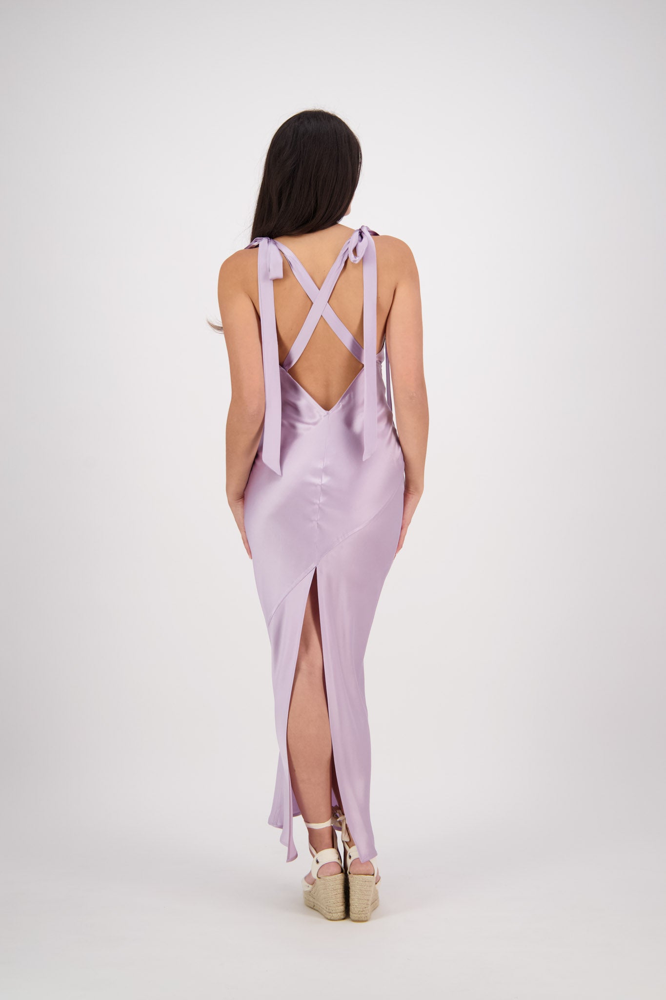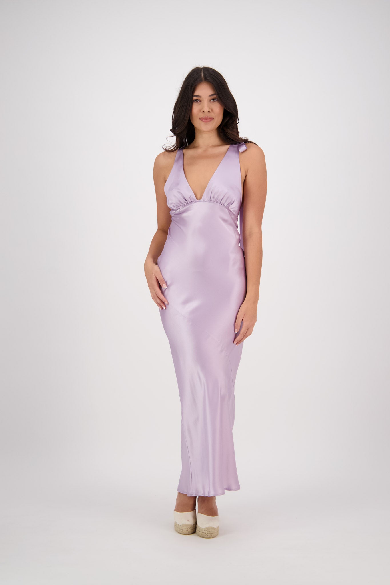 The all new Riley. It's the Little Rosie and Tie Back Dress reimagined in a beautiful silk bias cut style. Featuring a V neck shape, adjustable shoulder ties and plunging back neckline.